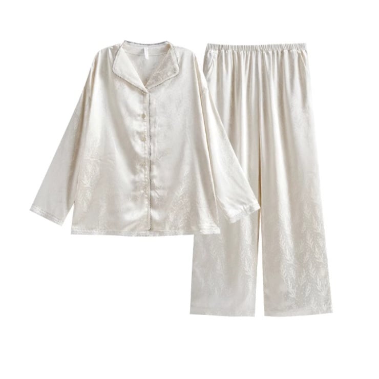 上品なツヤ感×リーフ柄のパジャマSET。