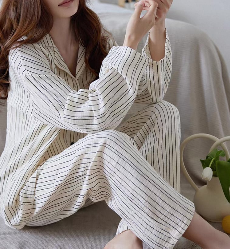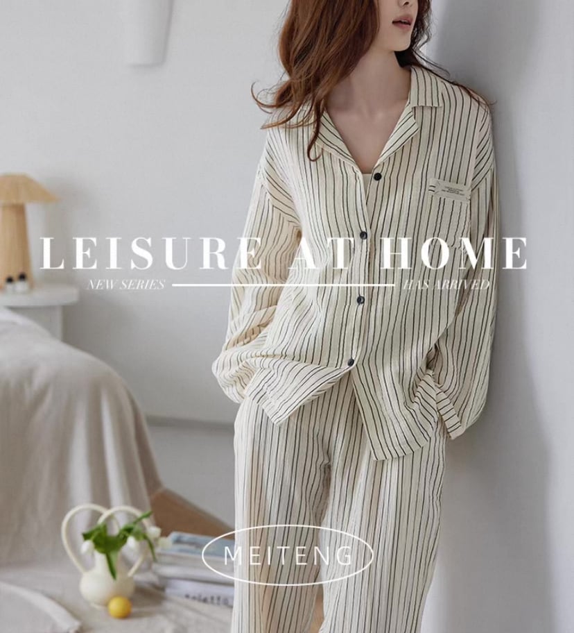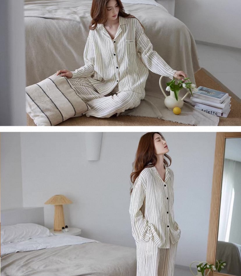 【M-XL】cotton100 stripe pattern long sleeve pajamas p1201