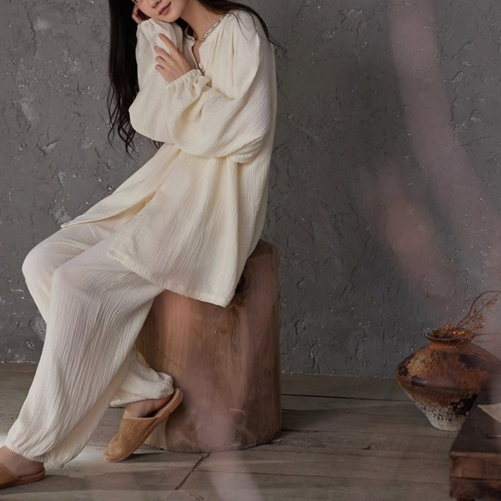 【M-2XL】cotton100% cardigan style pajamas p1511 100%コットン素材で仕立てた、カーディガン風デザインのパジャマSET。 柔らかな肌触りと通気性の良さが魅力で、シーズンを問わず快適に着られる一着です。 ゆったりシルエットが、大人の余裕を感じさせる上品なリラックススタイルを演出。 おうち時間もお気に入りの自分で。 【size】 【訳ありSALE】 こちらは詳細サイズが不明になりますためSALE価格にてご提供させていただいております。大体のサイズは画像の参考サイズ表をご覧いただきましてご検討くださいませ (▪︎サイズは日本人向けサイズとなります) 【素材】 綿100% ▪︎SUYAA人気ランキングbest10 https://www.suyaa.shop/blog/2021/11/14/025758 ▪︎SUYAAロングセラー人気アイテムはこちら https://www.suyaa.shop/categories/3901376 ▪︎SUYAA shop トップページ https://www.suyaa.shop/ ▪︎ご購入前にこちらを必ずお読みください。 後払い決済についても記載しております。 https://www.suyaa.shop/blog/2021/07/11/002334 ーーーーーーーーーーーーーーーーーーーーーーーー おまとめ購入におすすめ!大好評! 【SILK inner wear】 ルームウェア、パジャマのインナーにおすすめなシルク素材のアイテムを多数取り扱っております ❁silk❁ シルクは保温性、吸湿性、放湿性に優れていて 静電気が起きにくいのでお肌にも体にも優しい素材です 日常に身につけるインナー類はシルク素材のものを使用し、静電気の影響を防ぐことで体にかかるストレスを減らすことにもなり、健康(冷えや血流)や美容や睡眠の質の改善、予防にも役立ちます。 お肌に一番近いところに身に着けるインナー類、女性にとって大切な胸や陰部を守るために身につける下着はぜひシルクが含まれる素材のインナーをおすすめです。 SUYAAではお手頃価格でデザイン性も重視したシルクインナーを取り揃えております! ルームウェアやパジャマと共にぜひご利用ください。 ▪︎シルク素材インナー (ブラジャー/ショーツ/キャミソール/ 高品質silkパジャマetc...)はこちら ↓ https://www.suyaa.shop/categories/3616774 ーーーーーーーーーーーーーーーー 【ご挨拶】 沢山のショップの中からSUYAAをご覧いただきまして有難うございます。 SUYAAは海外からお取り寄せしたルームウエアを取り扱うルームウェア専門ショップです。 オーナーの私が重い睡眠障害/不眠症に悩んだ経験があり そこから眠りの大切さを知りその経験から 皆様の眠りやおうち時間を少しでも心地よく過ごしていただけるように、との想いでSUYAAを立ち上げました。 海外からのお取り寄せ商品となると、 本当に届くのか?商品は大丈夫なのか?など、 不安に感じられるお客様もいらっしゃると思います。 当店は信頼のあるルームウェア専門のお店から買い付けをしております。 海外からのお取り寄せのため、お届けまでにお時間をいただきますが最後までしっかりと対応させていただくことをお約束します。 今までご購入していただいた多数の商品の中で、発送後届かなかった。という事は一度もございません。 有難いことにSUYAAのルームウエアを気に入っていただき再購入してくださる方も多くいらっしゃいます。 本当に届くのか?とご心配な方にも安心していただけるために【後払い決済】もご用意しております。 (後払い決済の詳細は下記のURLをご覧ください) ご購入、ご入金、発注とタイムラグがあるため、 ご購入後に売り切れのご連絡をさせていただく可能性 もございますが、その際はその他の商品へのご変更、 もしくは返金対応をさせていただきます。 皆様の大切なお時間や資金を頂いて、購入していただいた想いを大切に最後まで責任を持って対応させていただく所存です。どうぞよろしくお願い致します。 ▪︎Instagram InstagramアカウントではSALE情報や新作情報なども随時掲載しております。 ▪︎公式Instagram @suyaa_sleep https://www.instagram.com/suyaa_sleep ▪︎公式LINEお友達登録で500円OFFクーポン ➕眠りと自律神経整えnoteプレゼント ↓↓↓ https://lin.ee/lUQPAtU