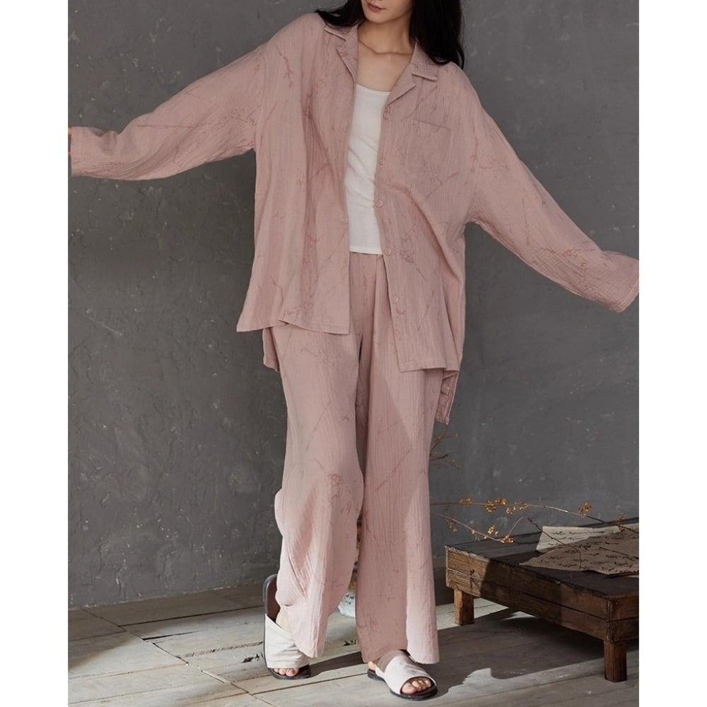 コットン100%のやわらかな生地を使用した、ピンクカラーのパジャマSET。