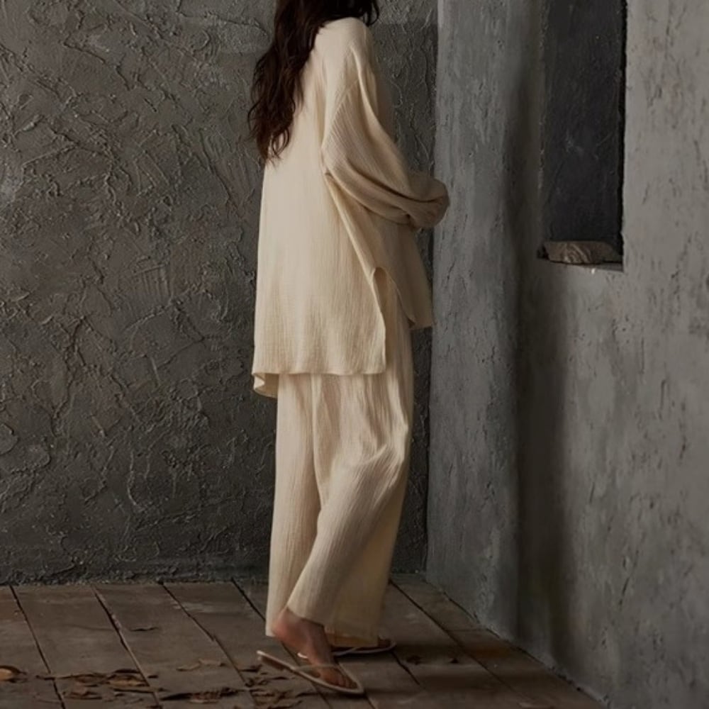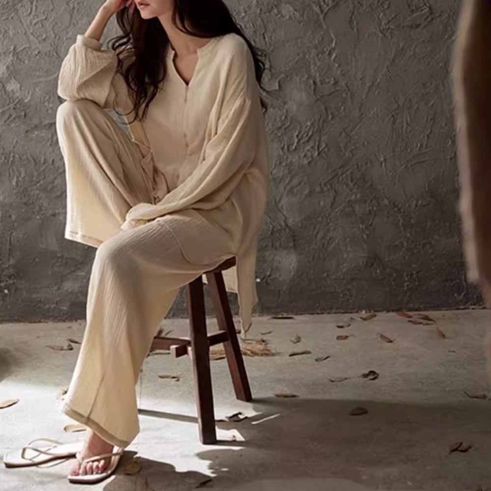 ゆったりとしたシルエットで肩の力を抜いてくつろげる、リラックス感のある着心地です。