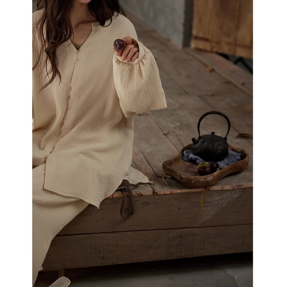 【2type】【M-XL】key-neck cardigan style pajamas p1516