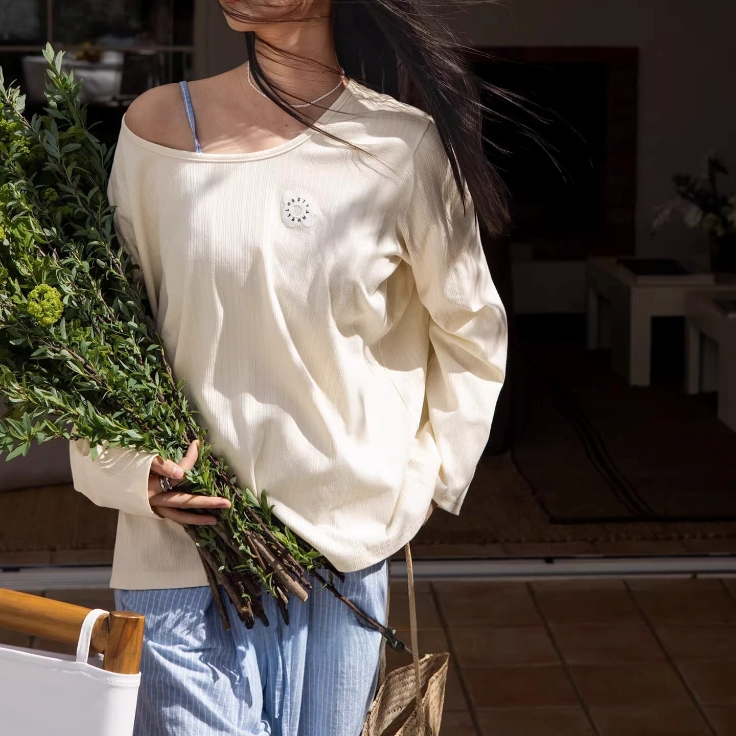 【M-XL】one-shoulder top + stripe pattern pants pajamas p1518