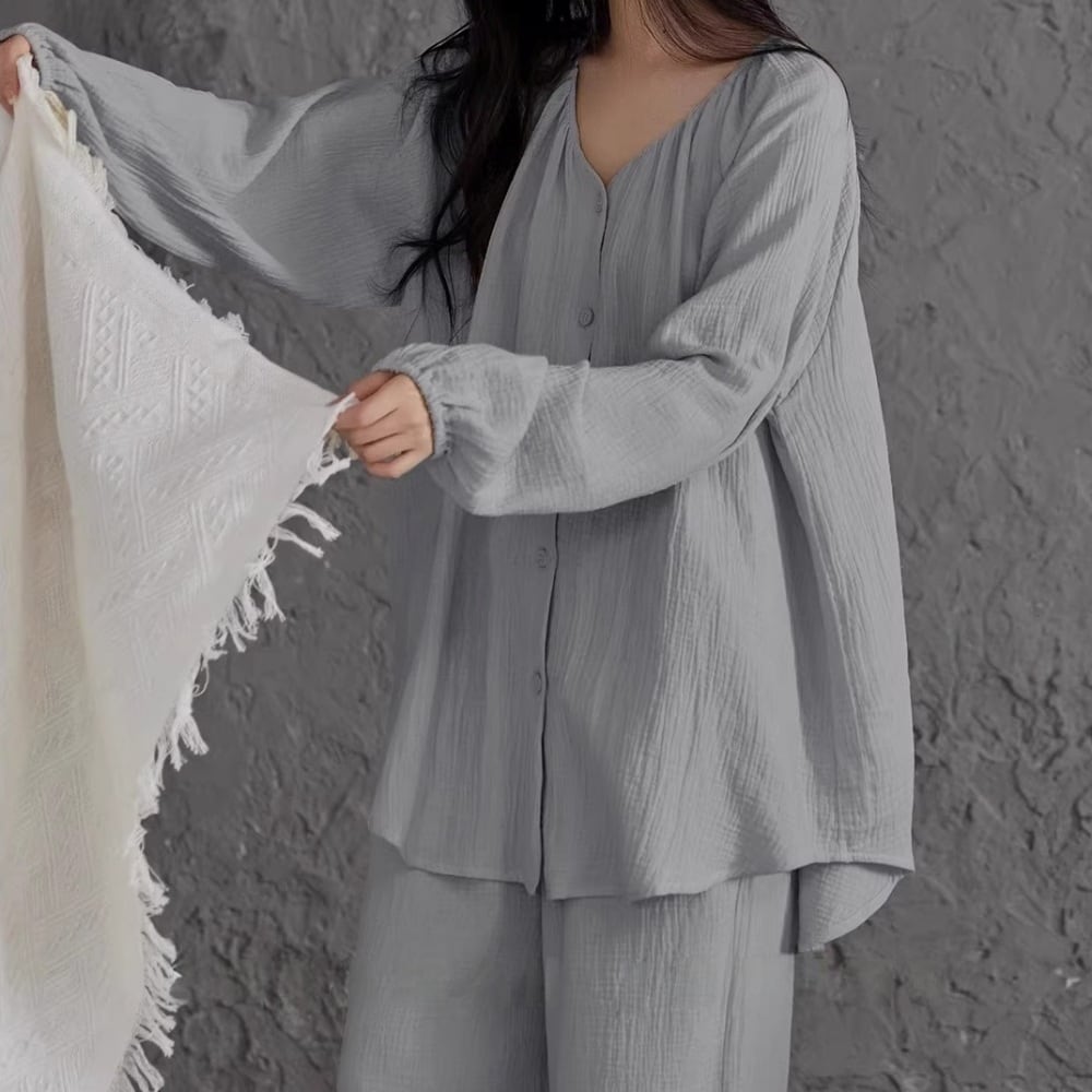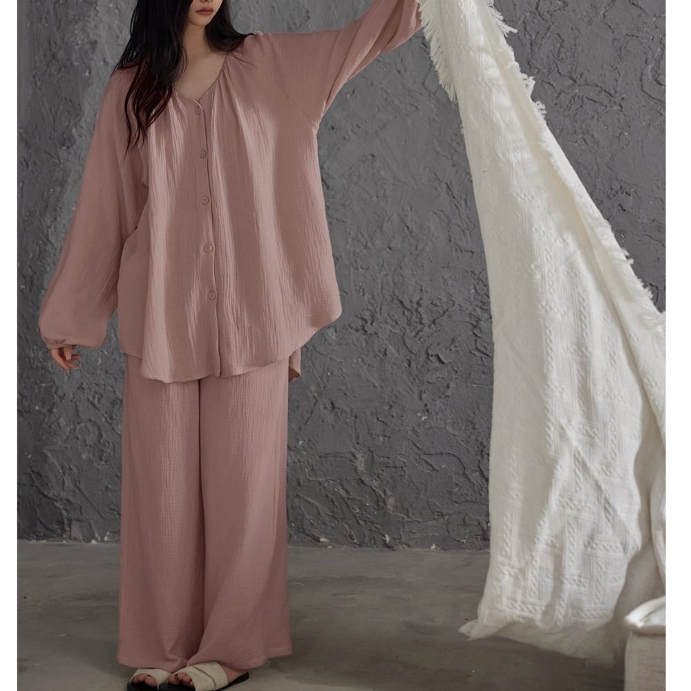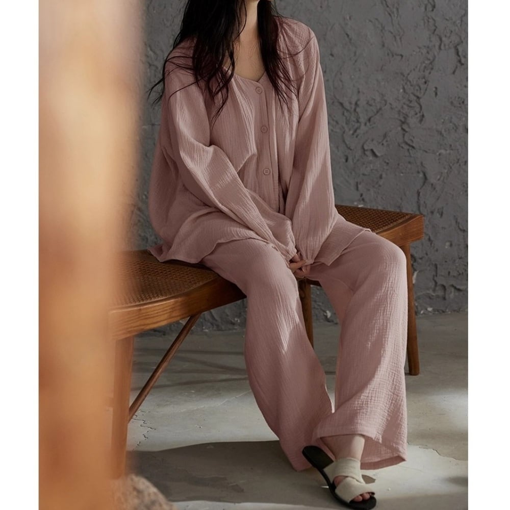 【2type】【7color】【M-2XL】cotton100% v-neck cardigan style pajamas p1510 肌に優しく、快適な着心地を叶えるコットン100%のパジャマSET。 柔らかなガーゼ調の素材が、ふんわりとしたリラックス感を演出します。 胸パッドあり・なしを選べる仕様で、自分に合った着心地をチョイスできるのも嬉しいポイント。 Vネックですっきり感を出しつつ、パフ袖で可愛さも◎ おうち時間もお気に入りの自分で。 【size】 M:着丈68cm | 胸囲112cm | 袖丈66cm | ズボン丈95cm | ウエスト58cm | ヒップ110cm L:着丈70cm | 胸囲116cm | 袖丈68cm | ズボン丈97cm | ウエスト60cm | ヒップ114cm XL:着丈72cm | 胸囲120cm | 袖丈70cm | ズボン丈99cm | ウエスト62cm | ヒップ118cm 2XL:着丈74cm | 胸囲124cm | 袖丈72cm | ズボン丈101cm | ウエスト64cm | ヒップ122cm 【素材】 綿100% ▪︎SUYAA人気ランキングbest10 https://www.suyaa.shop/blog/2021/11/14/025758 ▪︎SUYAAロングセラー人気アイテムはこちら https://www.suyaa.shop/categories/3901376 ▪︎SUYAA shop トップページ https://www.suyaa.shop/ ▪︎ご購入前にこちらを必ずお読みください。 後払い決済についても記載しております。 https://www.suyaa.shop/blog/2021/07/11/002334 ーーーーーーーーーーーーーーーーーーーーーーーー おまとめ購入におすすめ!大好評! 【SILK inner wear】 ルームウェア、パジャマのインナーにおすすめなシルク素材のアイテムを多数取り扱っております ❁silk❁ シルクは保温性、吸湿性、放湿性に優れていて 静電気が起きにくいのでお肌にも体にも優しい素材です 日常に身につけるインナー類はシルク素材のものを使用し、静電気の影響を防ぐことで体にかかるストレスを減らすことにもなり、健康(冷えや血流)や美容や睡眠の質の改善、予防にも役立ちます。 お肌に一番近いところに身に着けるインナー類、女性にとって大切な胸や陰部を守るために身につける下着はぜひシルクが含まれる素材のインナーをおすすめです。 SUYAAではお手頃価格でデザイン性も重視したシルクインナーを取り揃えております! ルームウェアやパジャマと共にぜひご利用ください。 ▪︎シルク素材インナー (ブラジャー/ショーツ/キャミソール/ 高品質silkパジャマetc...)はこちら ↓ https://www.suyaa.shop/categories/3616774 ーーーーーーーーーーーーーーーー 【ご挨拶】 沢山のショップの中からSUYAAをご覧いただきまして有難うございます。 SUYAAは海外からお取り寄せしたルームウエアを取り扱うルームウェア専門ショップです。 オーナーの私が重い睡眠障害/不眠症に悩んだ経験があり そこから眠りの大切さを知りその経験から 皆様の眠りやおうち時間を少しでも心地よく過ごしていただけるように、との想いでSUYAAを立ち上げました。 海外からのお取り寄せ商品となると、 本当に届くのか?商品は大丈夫なのか?など、 不安に感じられるお客様もいらっしゃると思います。 当店は信頼のあるルームウェア専門のお店から買い付けをしております。 海外からのお取り寄せのため、お届けまでにお時間をいただきますが最後までしっかりと対応させていただくことをお約束します。 今までご購入していただいた多数の商品の中で、発送後届かなかった。という事は一度もございません。 有難いことにSUYAAのルームウエアを気に入っていただき再購入してくださる方も多くいらっしゃいます。 本当に届くのか?とご心配な方にも安心していただけるために【後払い決済】もご用意しております。 (後払い決済の詳細は下記のURLをご覧ください) ご購入、ご入金、発注とタイムラグがあるため、 ご購入後に売り切れのご連絡をさせていただく可能性 もございますが、その際はその他の商品へのご変更、 もしくは返金対応をさせていただきます。 皆様の大切なお時間や資金を頂いて、購入していただいた想いを大切に最後まで責任を持って対応させていただく所存です。どうぞよろしくお願い致します。 ▪︎Instagram InstagramアカウントではSALE情報や新作情報なども随時掲載しております。 ▪︎公式Instagram @suyaa_sleep https://www.instagram.com/suyaa_sleep ▪︎公式LINEお友達登録で500円OFFクーポン ➕眠りと自律神経整えnoteプレゼント ↓↓↓ https://lin.ee/lUQPAtU