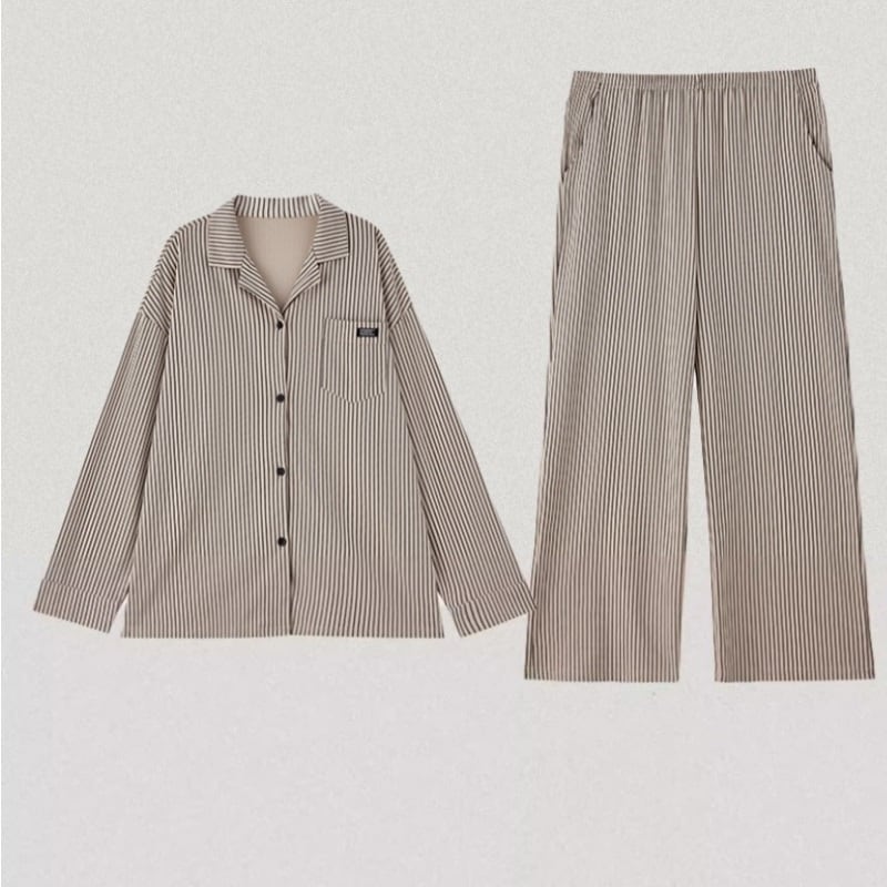 【M-2XL】ladies stripe pattern cardigan style pair pajamas p1520