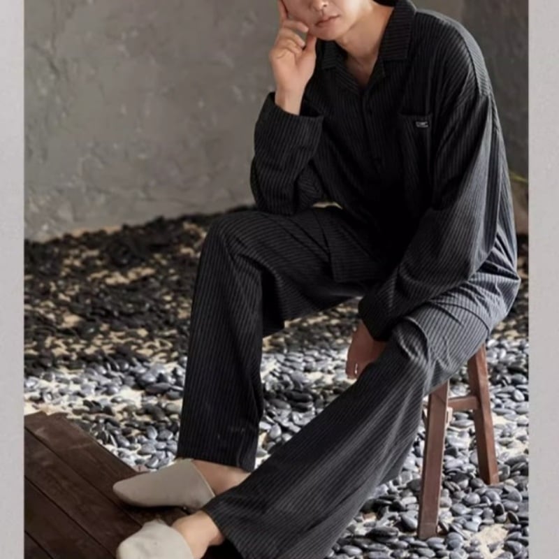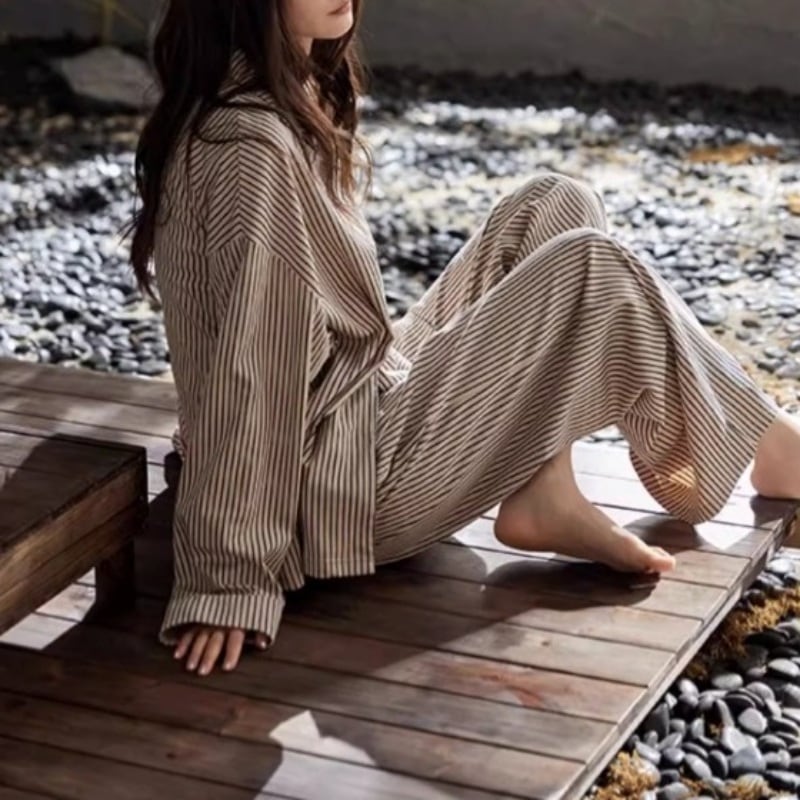 シンプルなストライプ柄が印象的なパジャマSET。