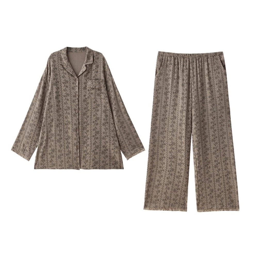 落ち着いたブラウンにお花柄を合わせた、パジャマSET。