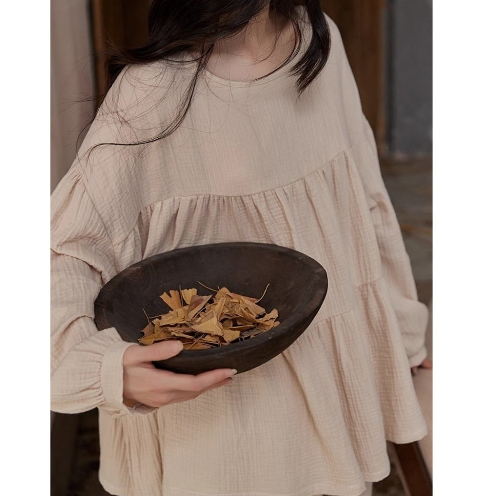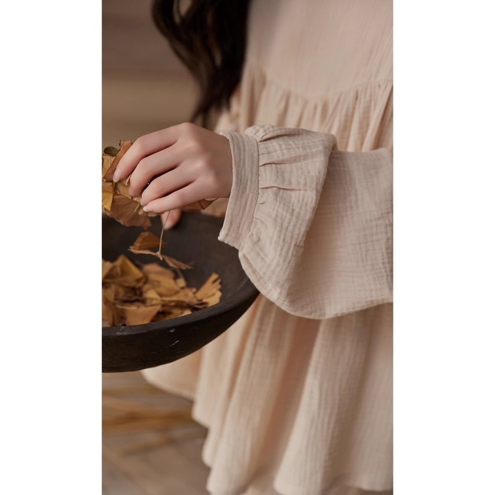 ゆったりとした着心地ながらも、ひらりと動くたびに女性らしい可憐さを感じさせてくれるデザイン。