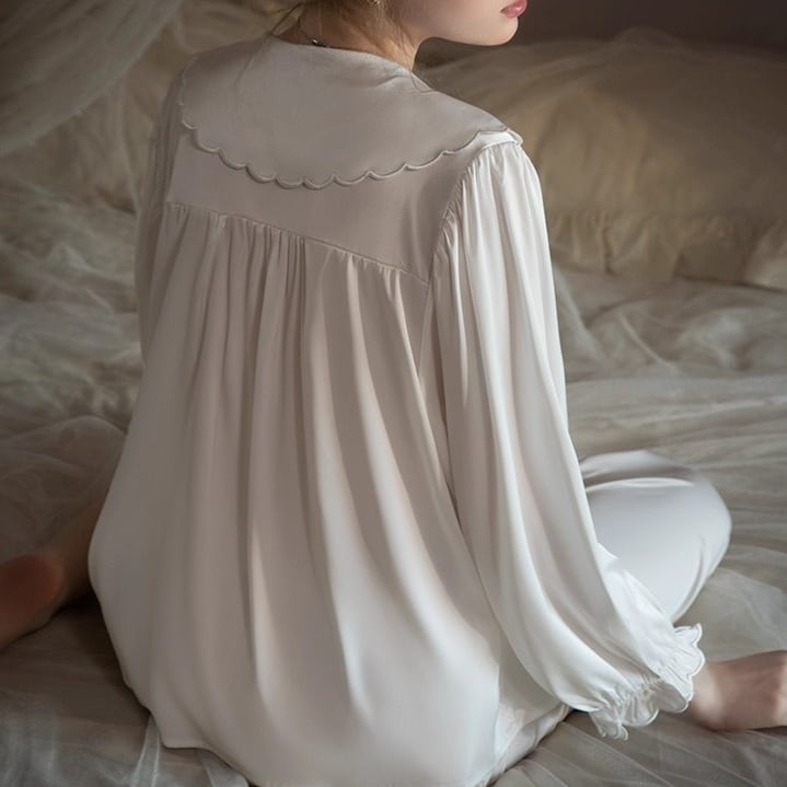 【2color】【M-L】frill collar cardigan style pajamas p1536