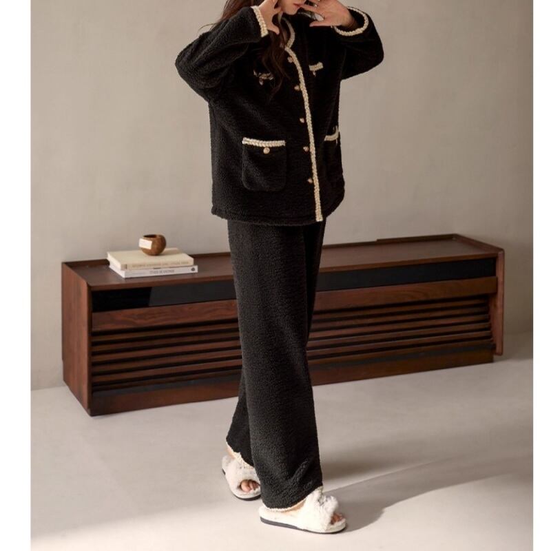 【M-2XL】flannel fleece bicolor cardigan style pajamas p1549