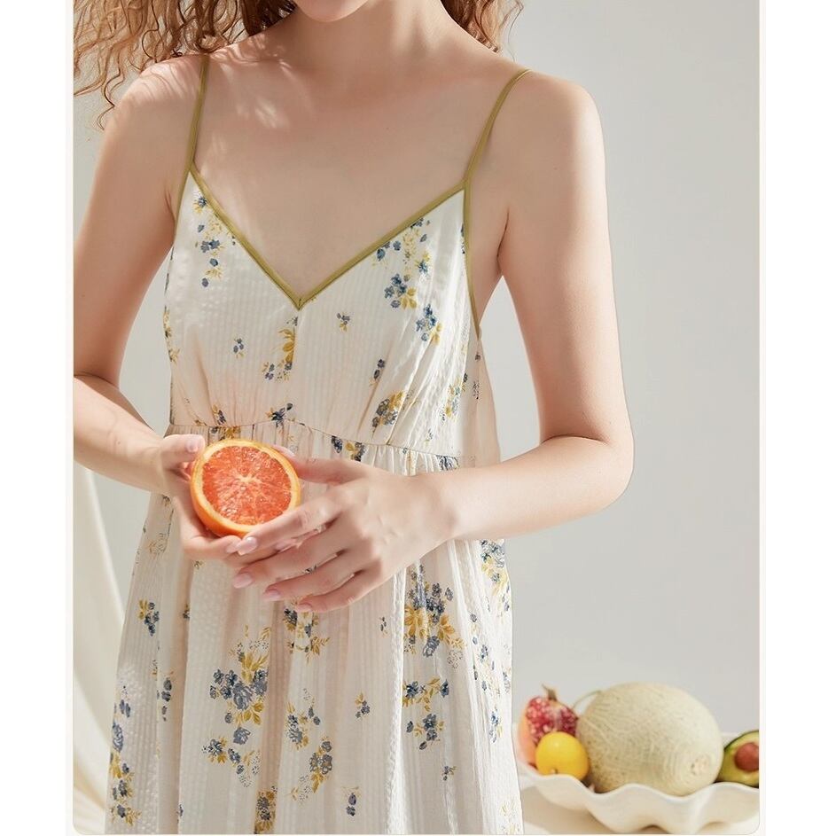 【2color】【S-L】2piece floral gown + suspender dress room wear p1551