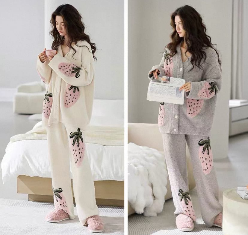 【4style】【M-2XL】v-neck cardigan-style fleece pajamas p1559 ふんわりと包み込むようなフリース素材が心地よいパジャマSET。ストロベリーデザインが可愛く Vネックのすっきりとしたラインが、ラウンジウェアに上品な抜け感を添えます。 軽やかであたたかく、寒い季節のナイトタイムを快適に。 おうち時間をもっと特別にする、大人のためのリラックスパジャマです。 【size】 tops M:着丈65cm | 肩幅46.5cm | 胸囲118cm | 袖丈50.5cm L:着丈67cm | 肩幅48cm | 胸囲122cm | 袖丈52cm XL:着丈69cm | 肩幅49.5cm | 胸囲126cm | 袖丈53.5cm 2XL:着丈70cm | 肩幅51cm | 胸囲130cm | 袖丈55cm pants M:ズボン丈94cm | ヒップ102cm L:ズボン丈96cm | ヒップ106cm XL:ズボン丈98cm | ヒップ110cm 2XL:ズボン丈99cm | ヒップ114cm (▪︎サイズは日本人向けサイズとなります) 【素材】 ポリエステル100% ▪︎SUYAA人気ランキングbest10 https://www.suyaa.shop/blog/2021/11/14/025758 ▪︎SUYAAロングセラー人気アイテム https://www.suyaa.shop/categories/3901376 ▪︎SUYAA shop トップページ https://www.suyaa.shop/ ▪︎ご購入前にこちらを必ずお読みください。 後払い決済についても記載しております。 https://www.suyaa.shop/blog/2021/07/11/002334 ーーーーーーーーーーーーーーーーーーーーーーーー おまとめ購入におすすめ!大好評! 【SILK inner wear】 ルームウェア、パジャマのインナーにおすすめなシルク素材のアイテムを多数取り扱っております ❁silk❁ シルクは保温性、吸湿性、放湿性に優れていて 静電気が起きにくいのでお肌にも体にも優しい素材です 日常に身につけるインナー類はシルク素材のものを使用し、静電気の影響を防ぐことで体にかかるストレスを減らすことにもなり、健康(冷えや血流)や美容や睡眠の質の改善、予防にも役立ちます。 お肌に一番近いところに身に着けるインナー類、女性にとって大切な胸や陰部を守るために身につける下着はぜひシルクが含まれる素材のインナーをおすすめです。 SUYAAではお手頃価格でデザイン性も重視したシルクインナーを取り揃えております ルームウェアやパジャマと共にぜひご利用ください。 ▪︎シルク素材インナー (ブラジャー/ショーツ/キャミソールetc...)はこちら ↓ https://www.suyaa.shop/categories/3616774 ーーーーーーーーーーーーーーーー 【ご挨拶】 沢山のショップの中からSUYAAをご覧いただきまして有難うございます。 SUYAAは海外からお取り寄せしたルームウエアを取り扱うルームウェア専門ショップです。 オーナーの私が重い睡眠障害/不眠症に悩んだ経験があり そこから眠りの大切さを知りその経験から 皆様の眠りやおうち時間を少しでも心地よく過ごしていただけるように、 との想いでSUYAAを立ち上げました。 海外からのお取り寄せ商品となると、 本当に届くのか?商品は大丈夫なのか?など、 不安に感じられるお客様もいらっしゃると思います。 当店は信頼のあるルームウェア専門のお店から買い付けをしております。 海外からのお取り寄せのため、お届けまでにお時間をいただきますが最後までしっかりと対応させていただくことをお約束します。 今までご購入していただいた多数の商品の中で、発送後届かなかった。という事は一度もございません。 有難いことにSUYAAのルームウエアを気に入っていただき再購入してくださる方も多くいらっしゃいます。 本当に届くのか?とご心配な方にも安心していただけるために【後払い決済】もご用意しております。 (後払い決済の詳細は下記のURLをご覧ください) ご購入、ご入金、発注とタイムラグがあるため、 ご購入後に売り切れのご連絡をさせていただく可能性 もございますが、その際はその他の商品へのご変更、 もしくは返金対応をさせていただきます。 皆様の大切なお時間や資金を頂いて、購入していただいた想いを大切に最後まで責任を持って対応させていただきますのでどうぞよろしくお願い致します。 ▪︎Instagram InstagramアカウントではSALE情報や新作情報なども随時掲載しております。 ▪︎公式Instagram @suyaa_sleep https://www.instagram.com/suyaa_sleep ▪︎公式LINEお友達登録で500円OFFクーポン ➕眠りと自律神経整えnoteプレゼント ↓↓↓ https://lin.ee/lUQPAtU