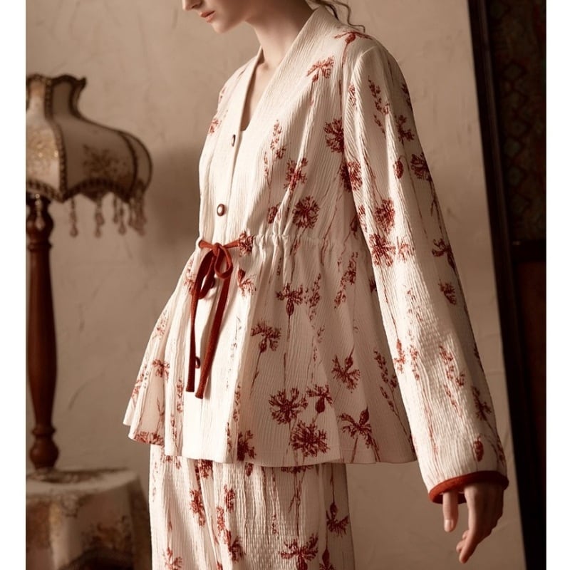 【2COLOR】【S-L】flower pattern v-neck cardigan style pajamas p1560