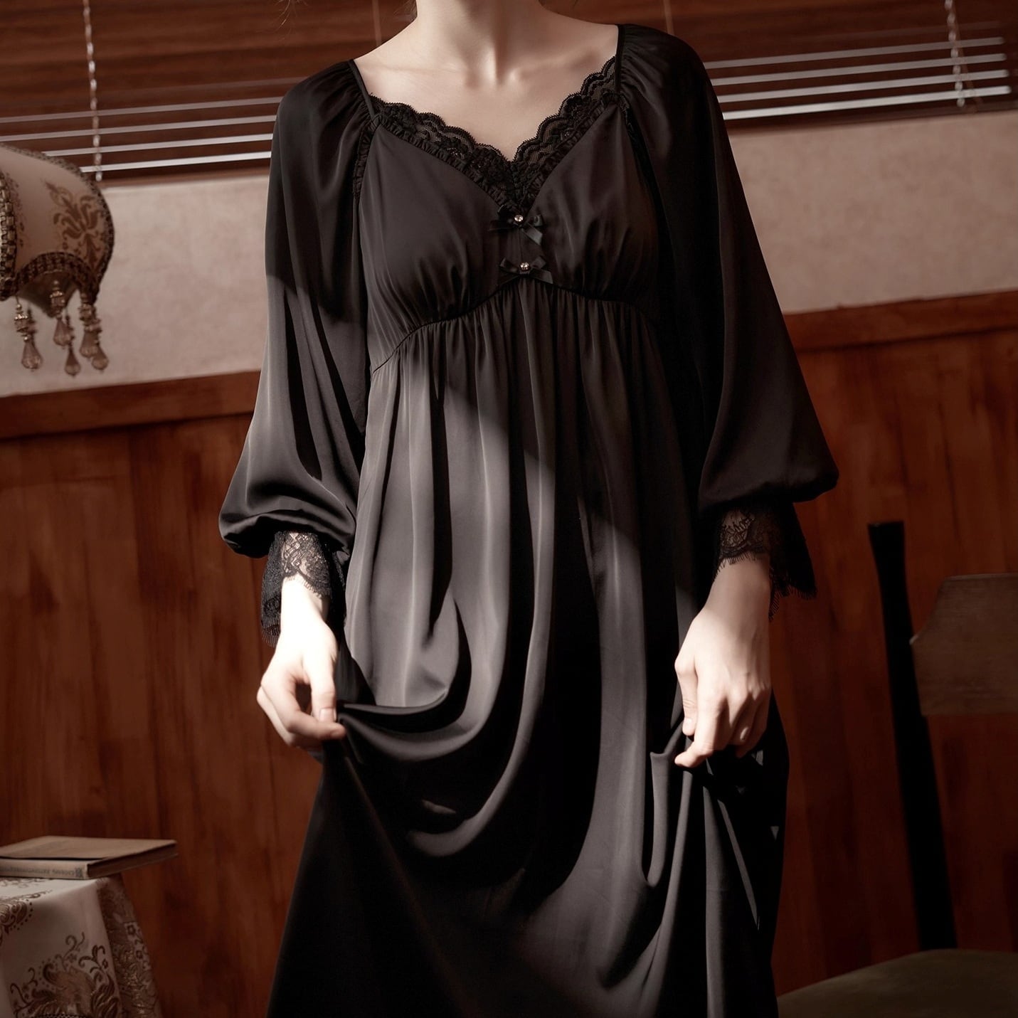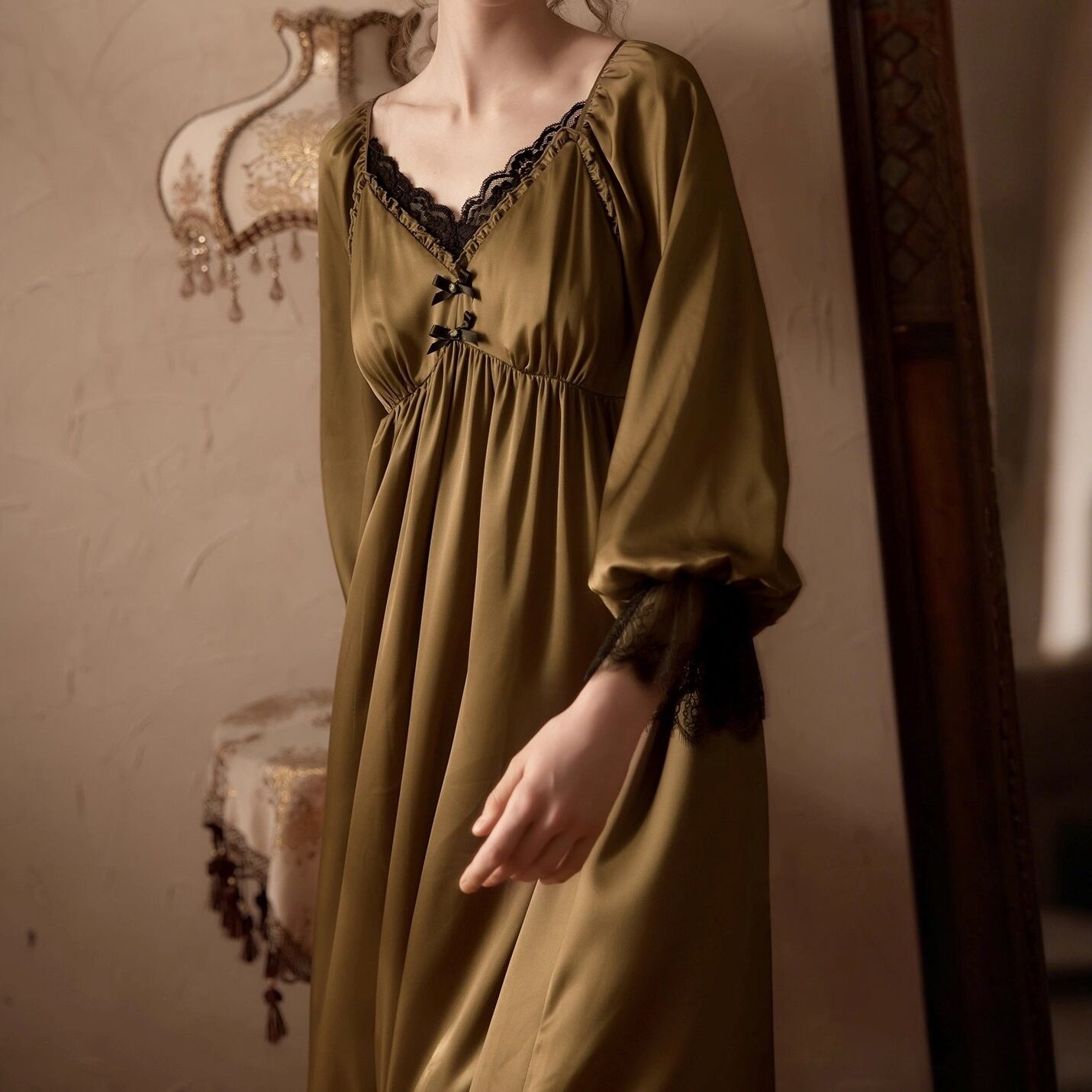 深みのあるダイヤモンドネックが印象的なナイトドレス。