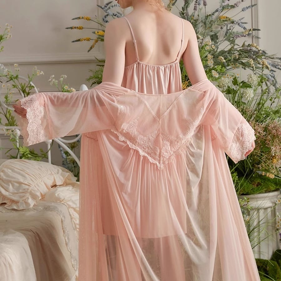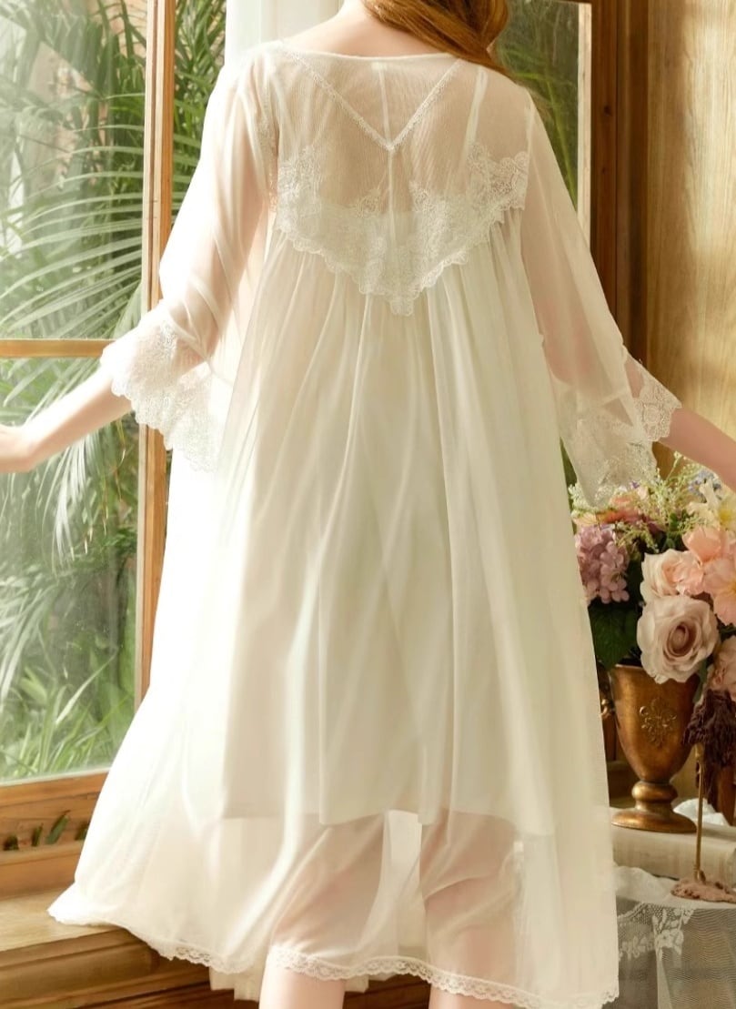 【4color/M-XL】see-through cardigan+long camisole set roomwear p1189