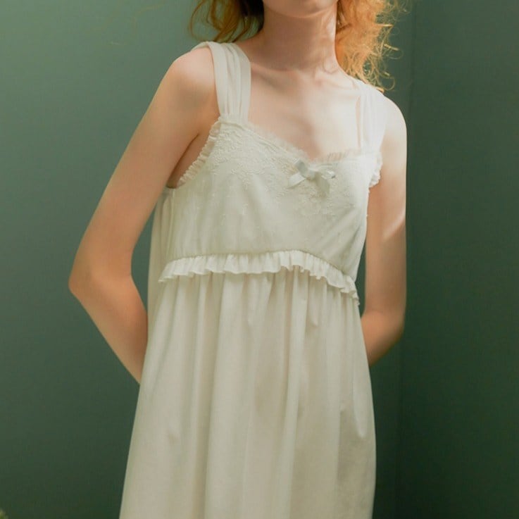【3color】【SML】ribbon decoration one-piece roomwear p884