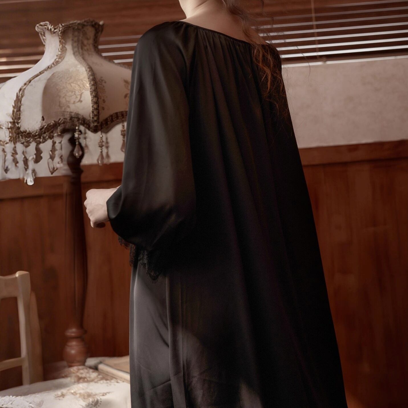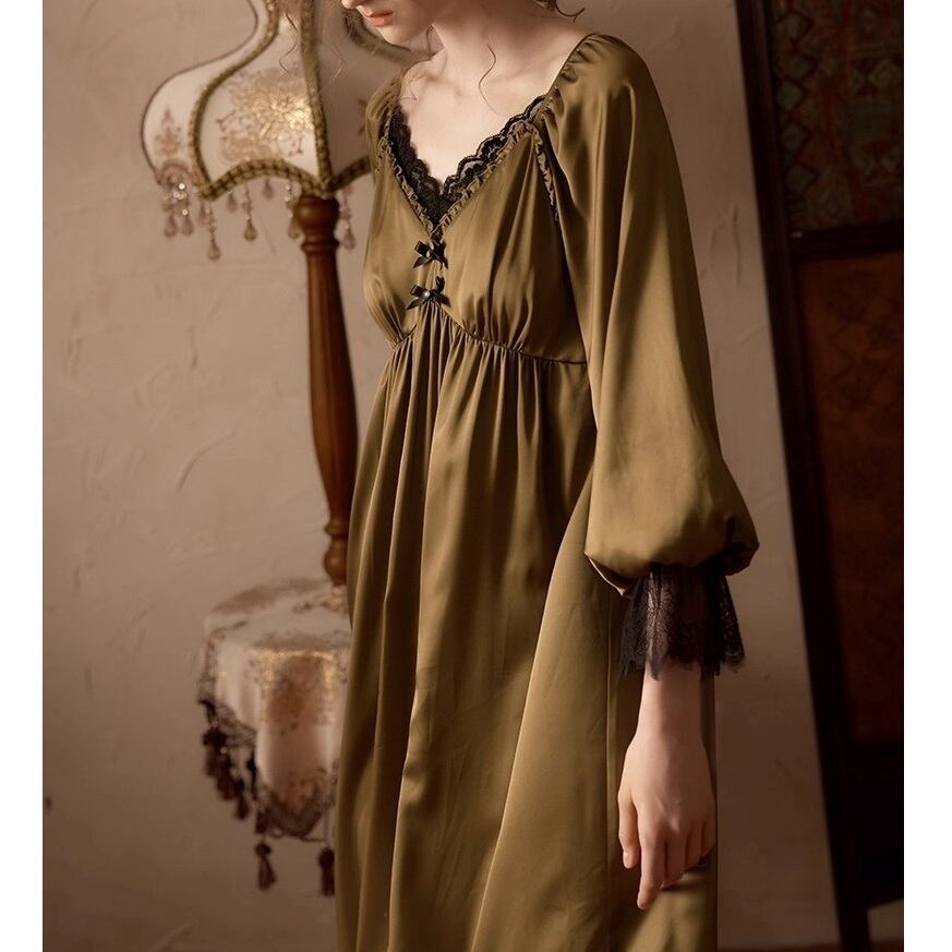 深みのあるダイヤモンドネックが印象的なナイトドレス。