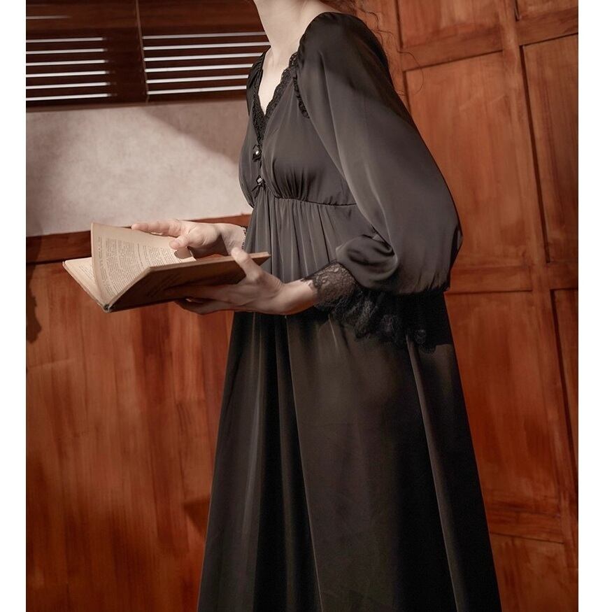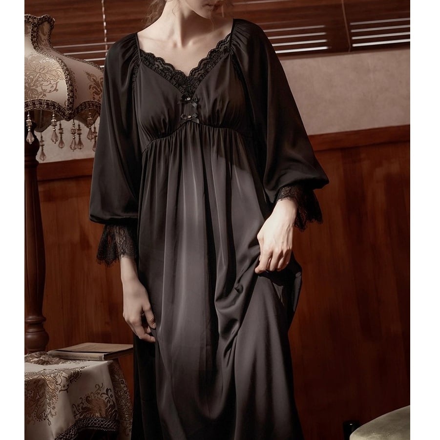【2COLOR】【S-L】diamond-neck lace nightdress p1565
