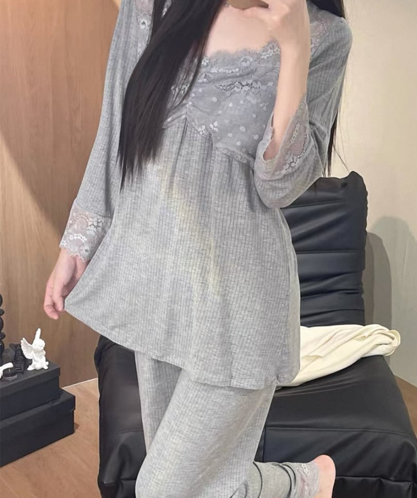 即納現品限りsale グレーLサイズのみ【ladies】lace desigh pajama