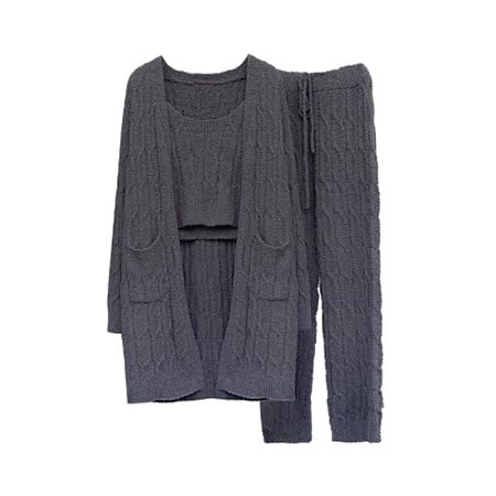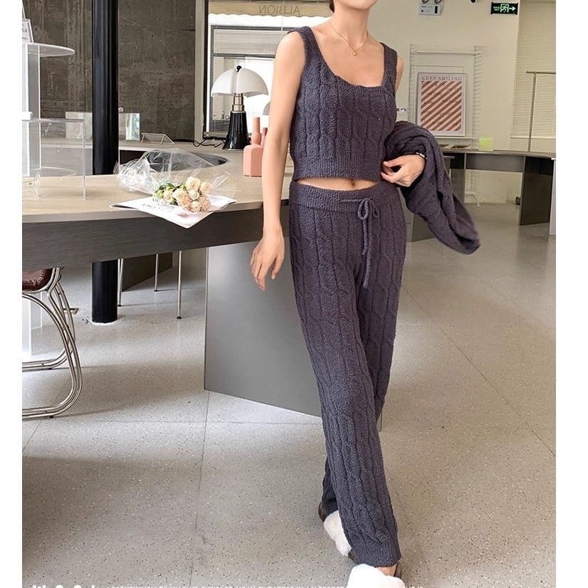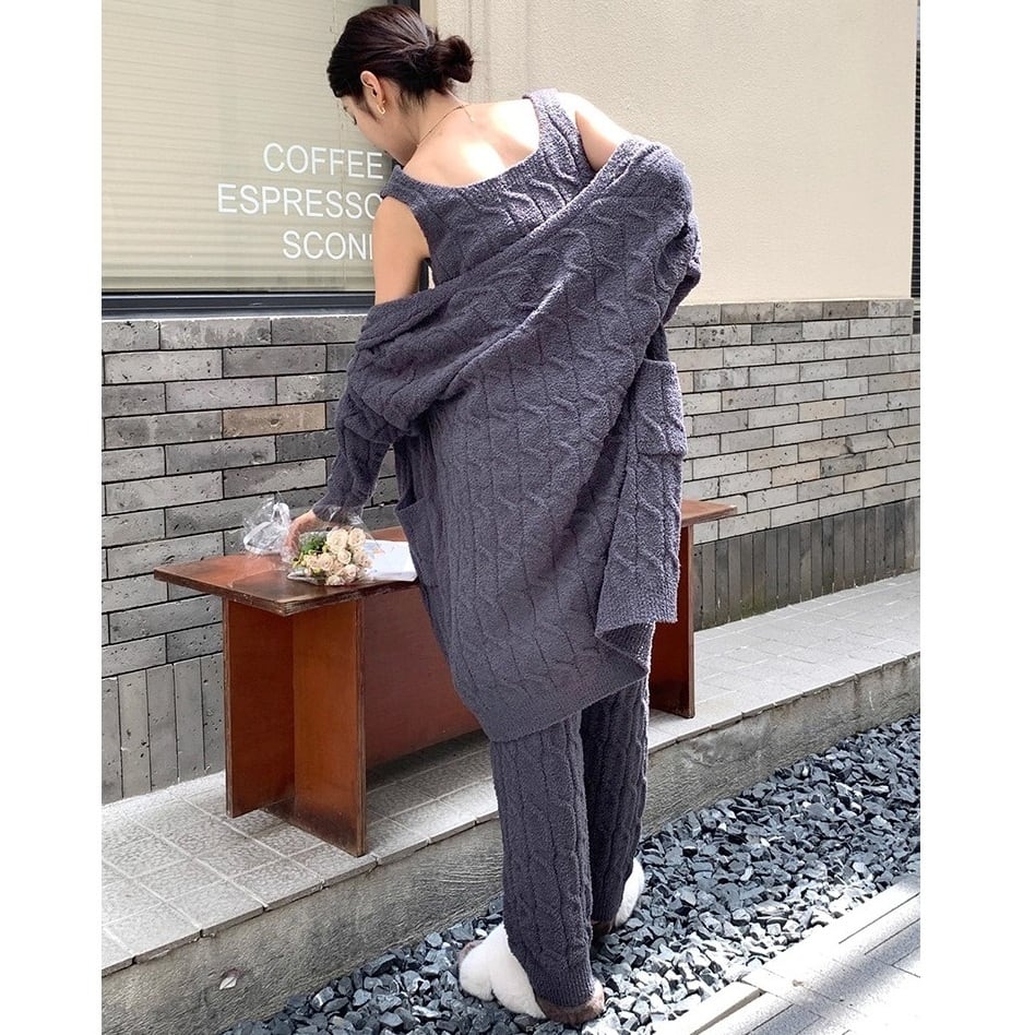 カーディガン・クロップドキャミソール・リラックスパンツの“こなれ3点セット”ルームウェア。