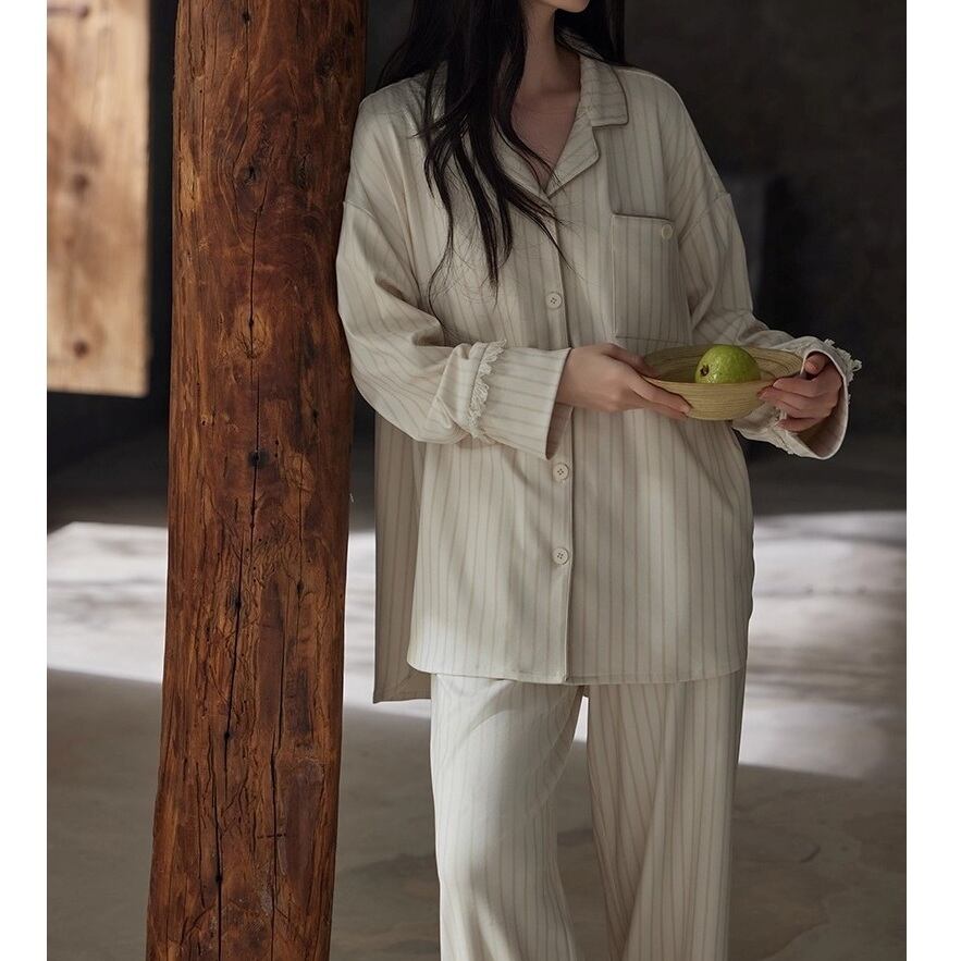 ストライプ柄×シンプルなデザインを掛け合わせた大人のためのパジャマSET。