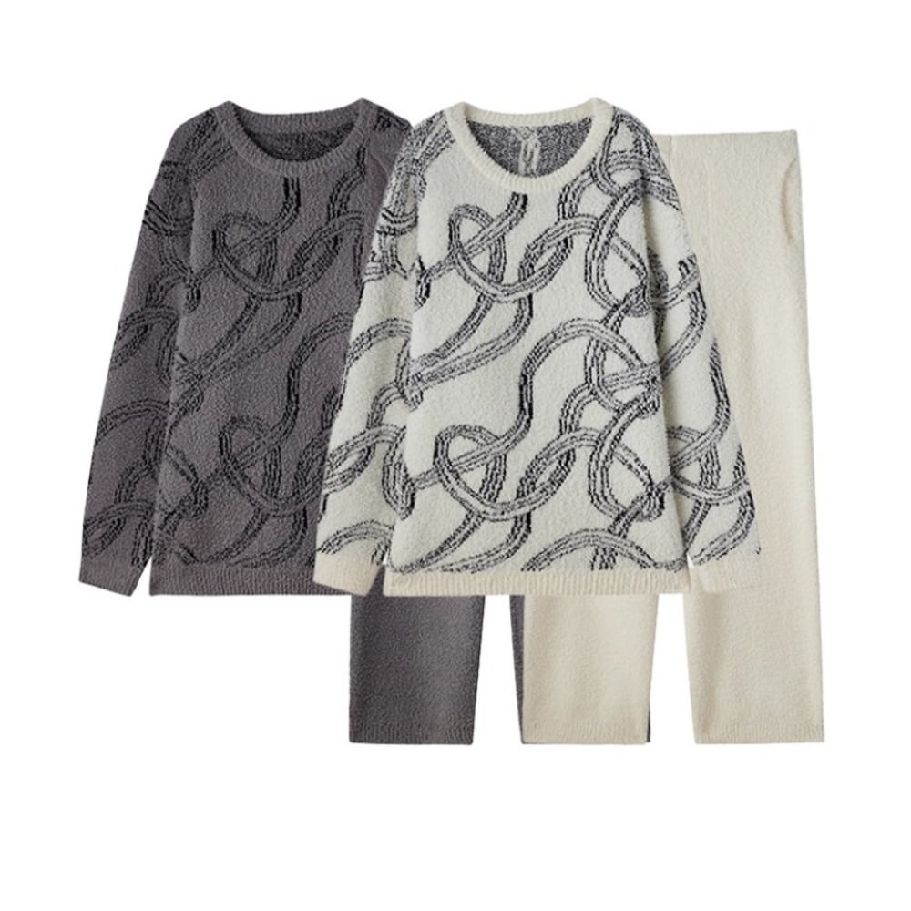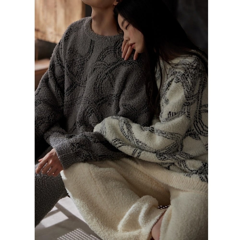 柔らかく身体を包み込むフリース素材で仕立てたペアパジャマは、触れた瞬間にほっとするようなあたたかさが広がります。