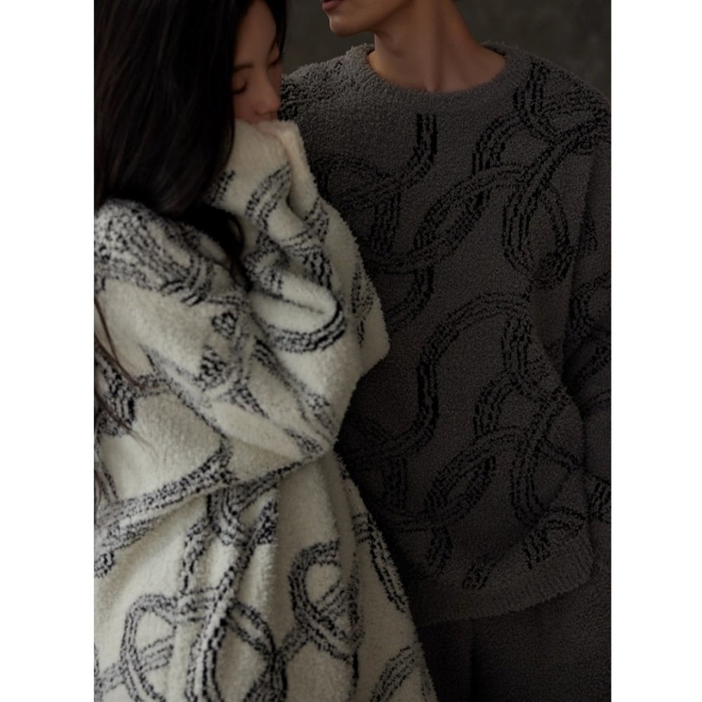 柔らかく身体を包み込むフリース素材で仕立てたペアパジャマは、触れた瞬間にほっとするようなあたたかさが広がります。