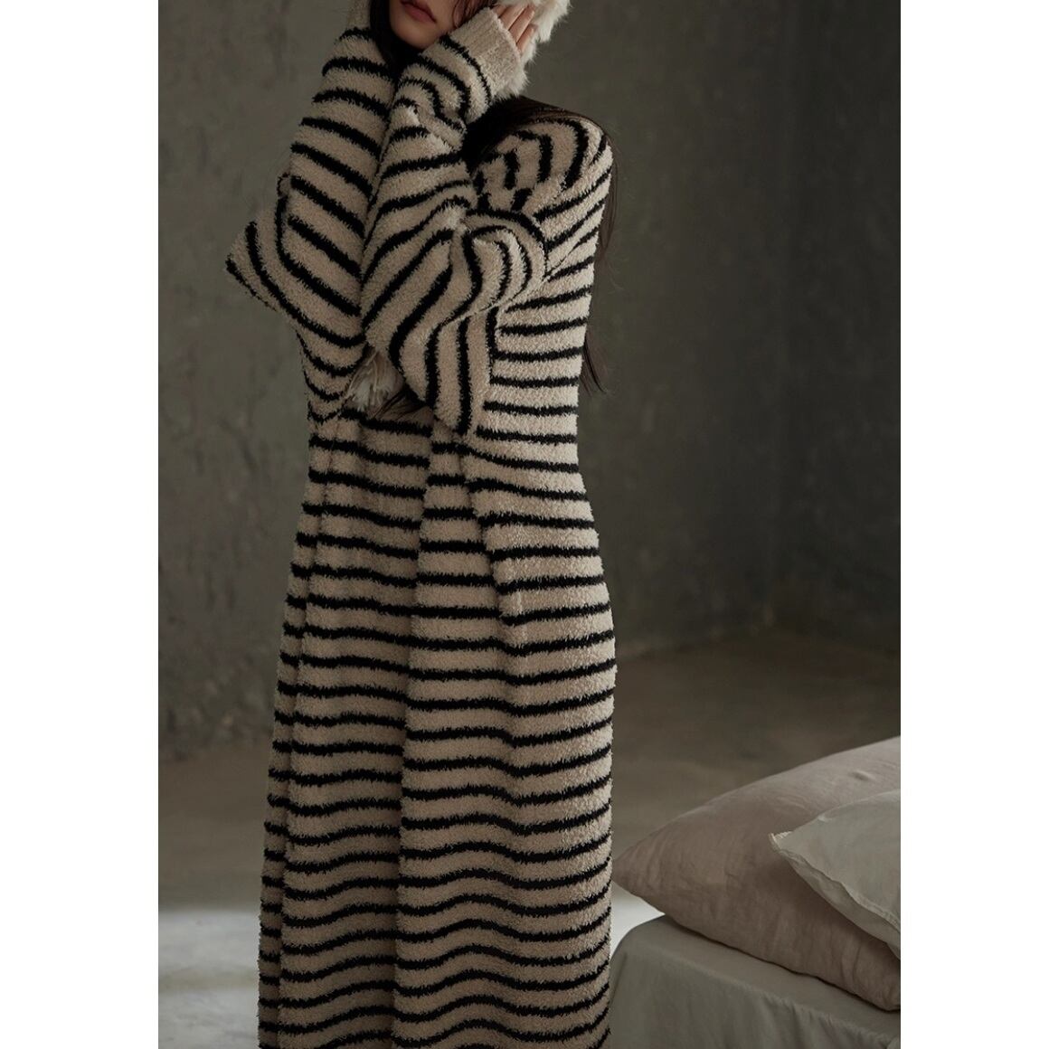 訳ありSALE【M-XL】warm stripe pattern one-piece style room wear p1585