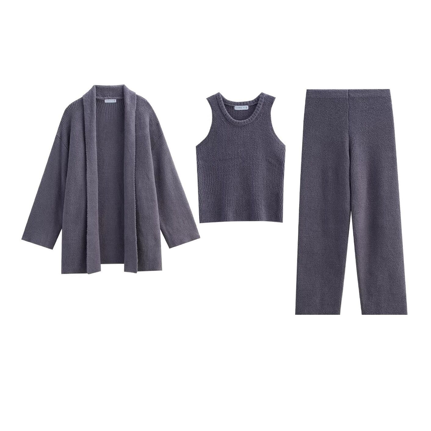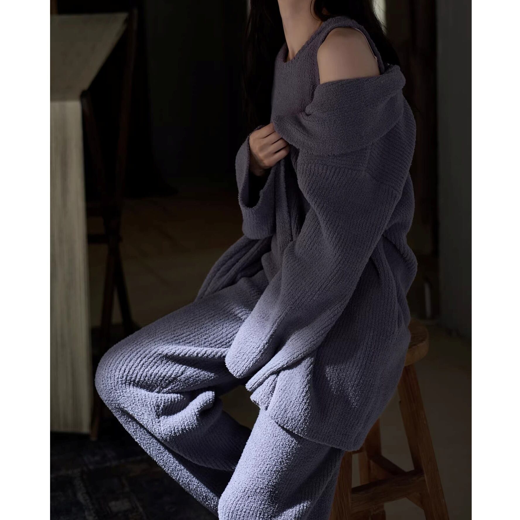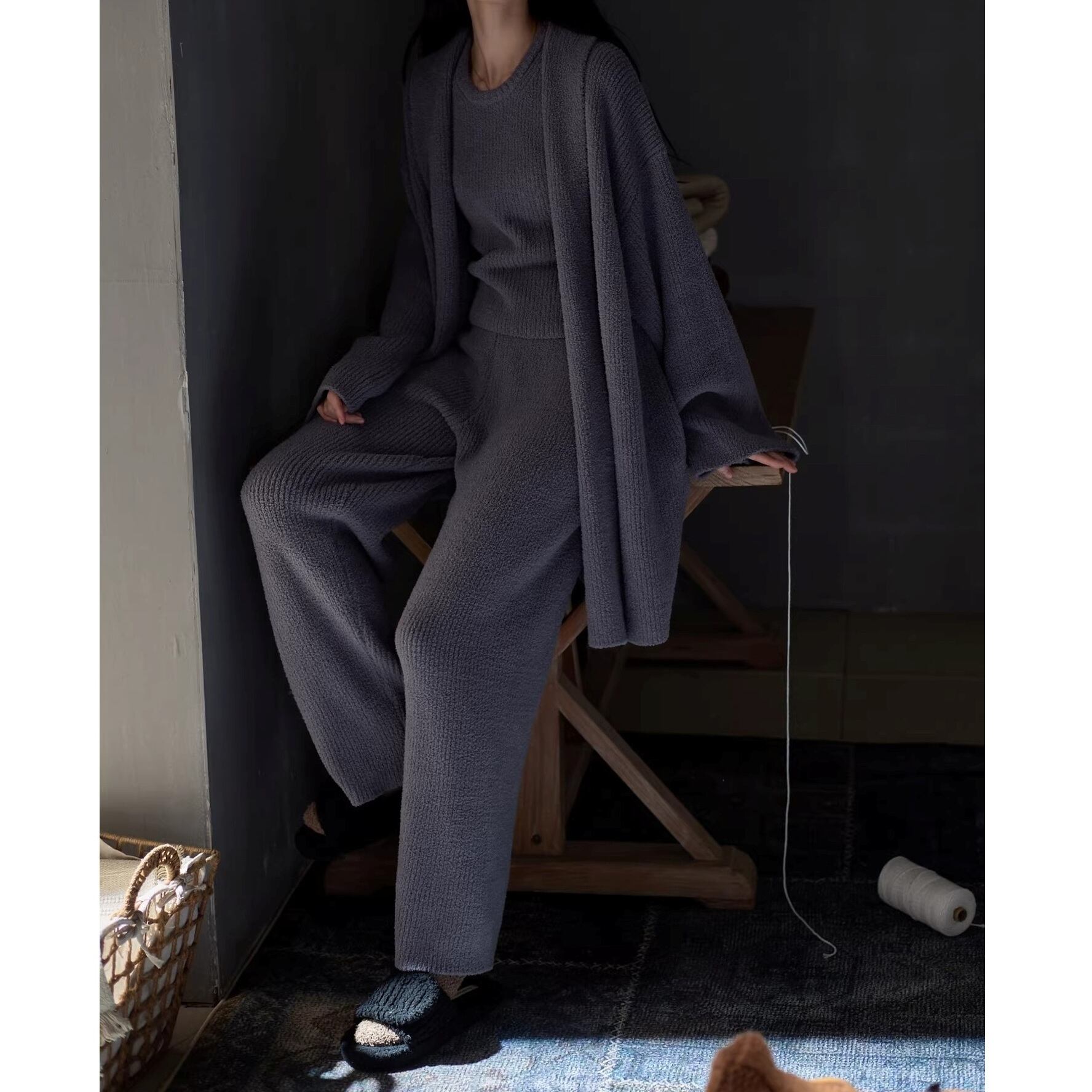 訳ありSALE【3piece】【M-XL】warm camisole cardigan pants simple design pajamas p1591