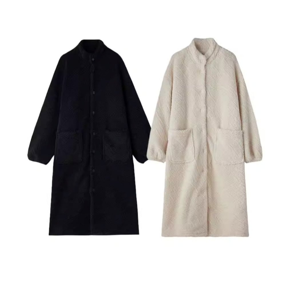 訳ありSALE【M-XL】ladies warm stand collar long robe p1600