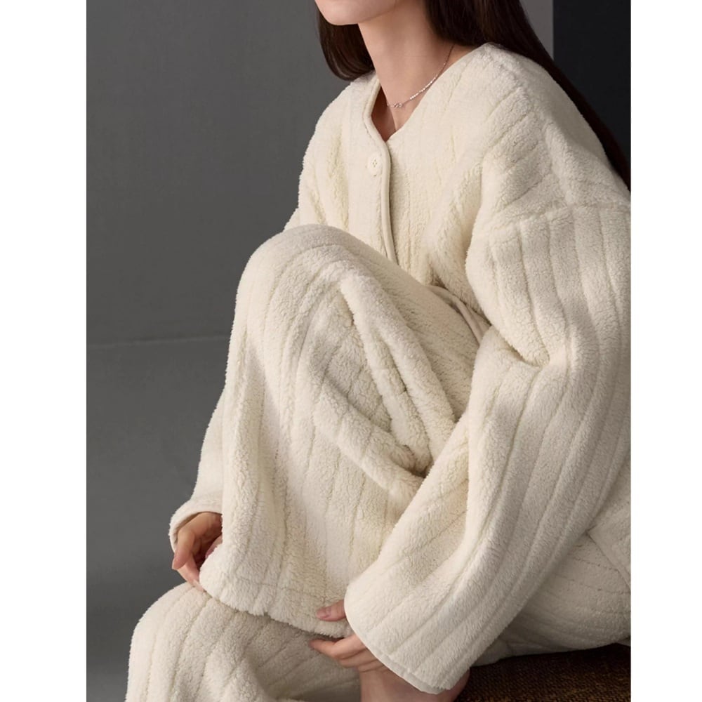 【M-XL】ladies warm flannel simple design cardigan style pair pajamas p1601