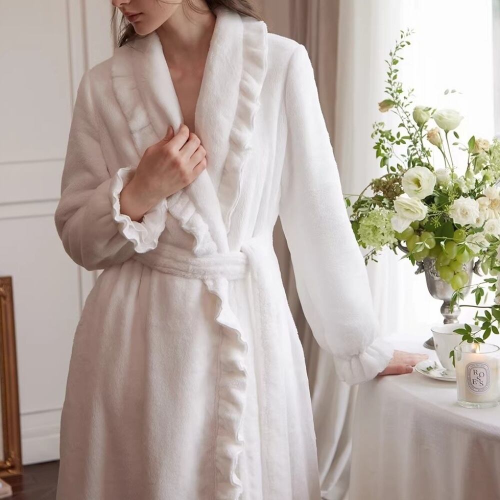 《やさしいぬくもりをまとう、上品フリルローブ》