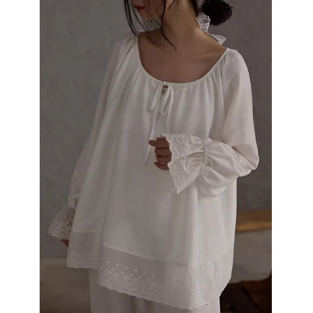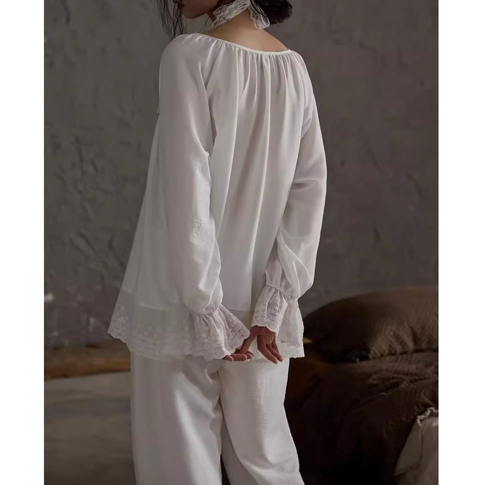 袖口に広がるトランペットスリーブが印象的な、フェミニンなパジャマSET。