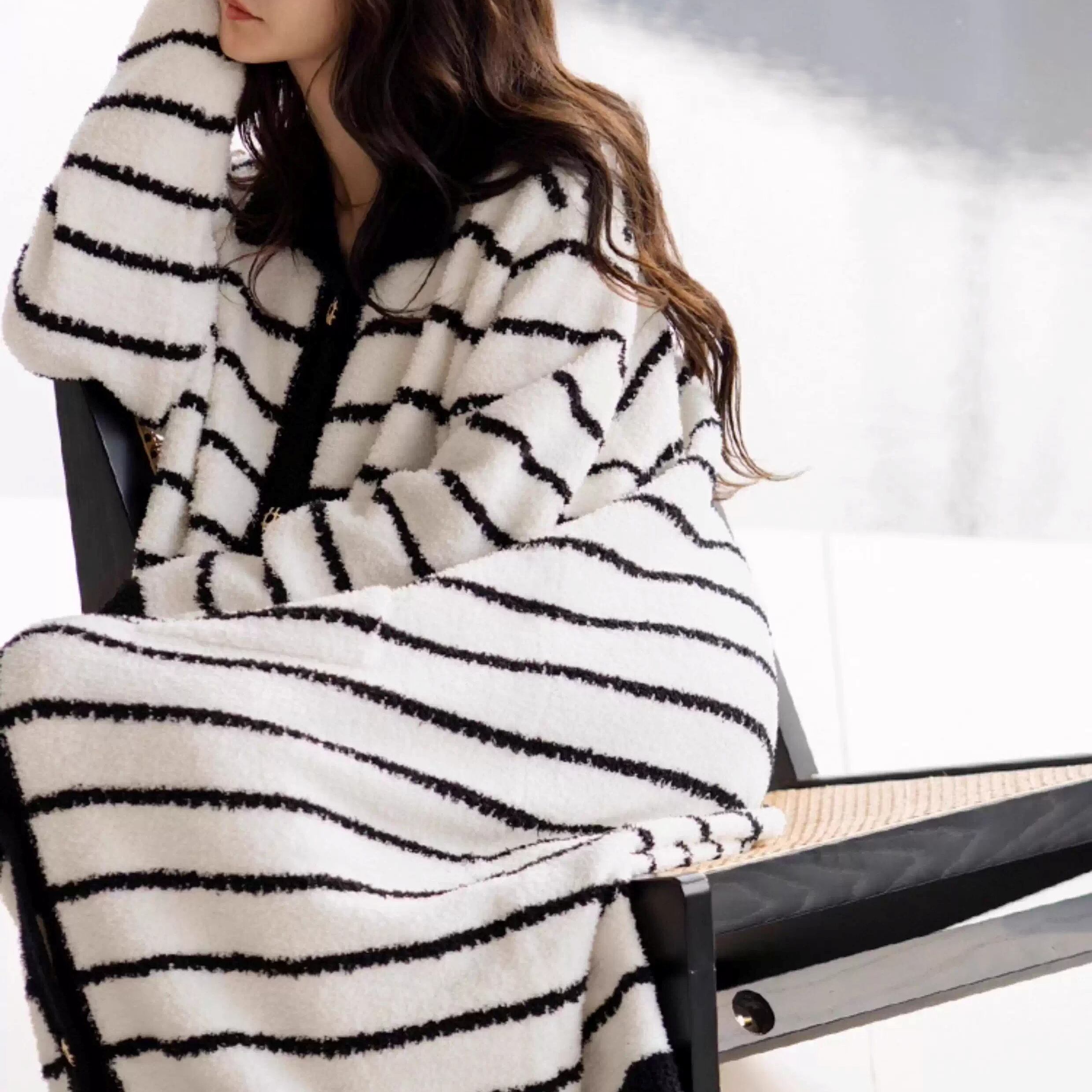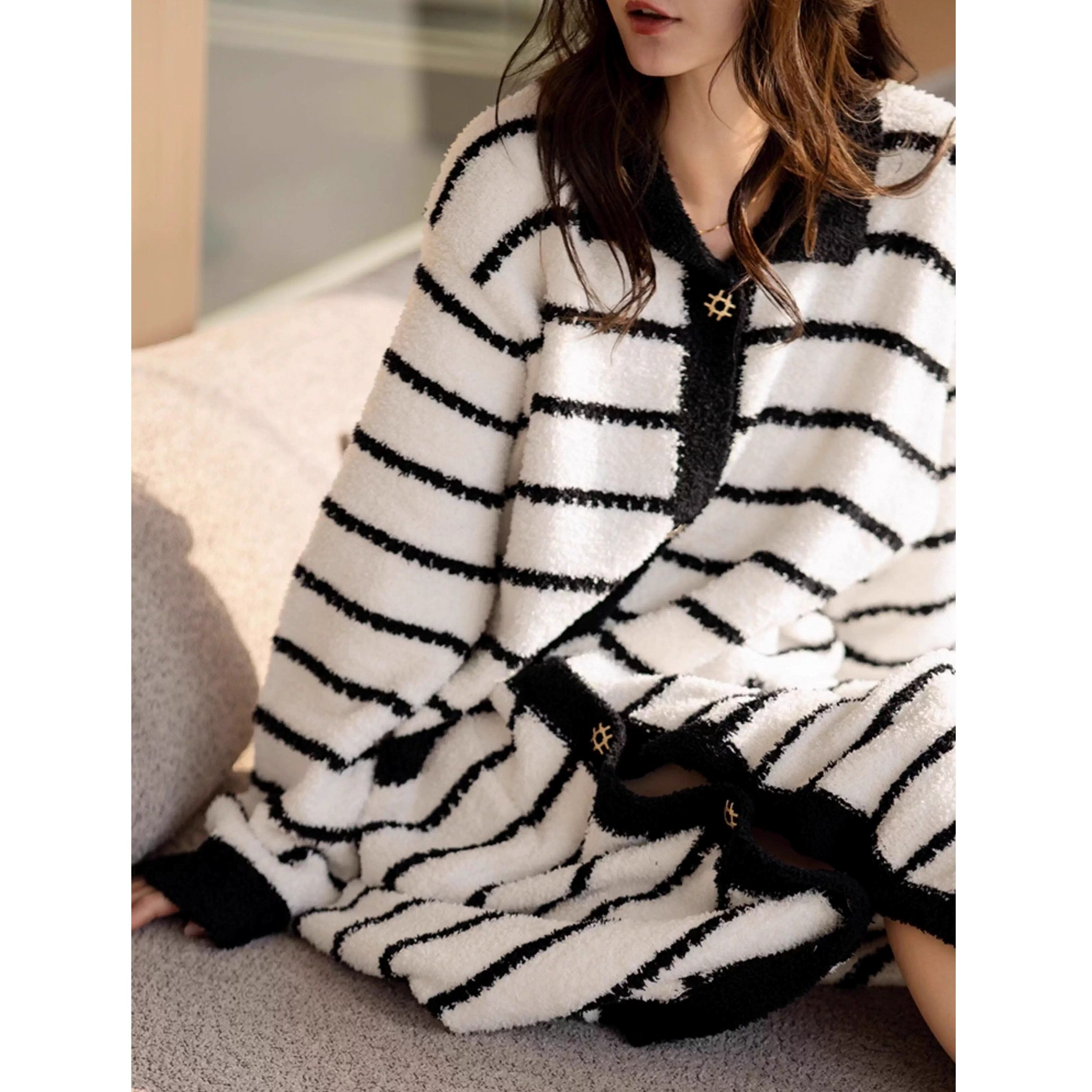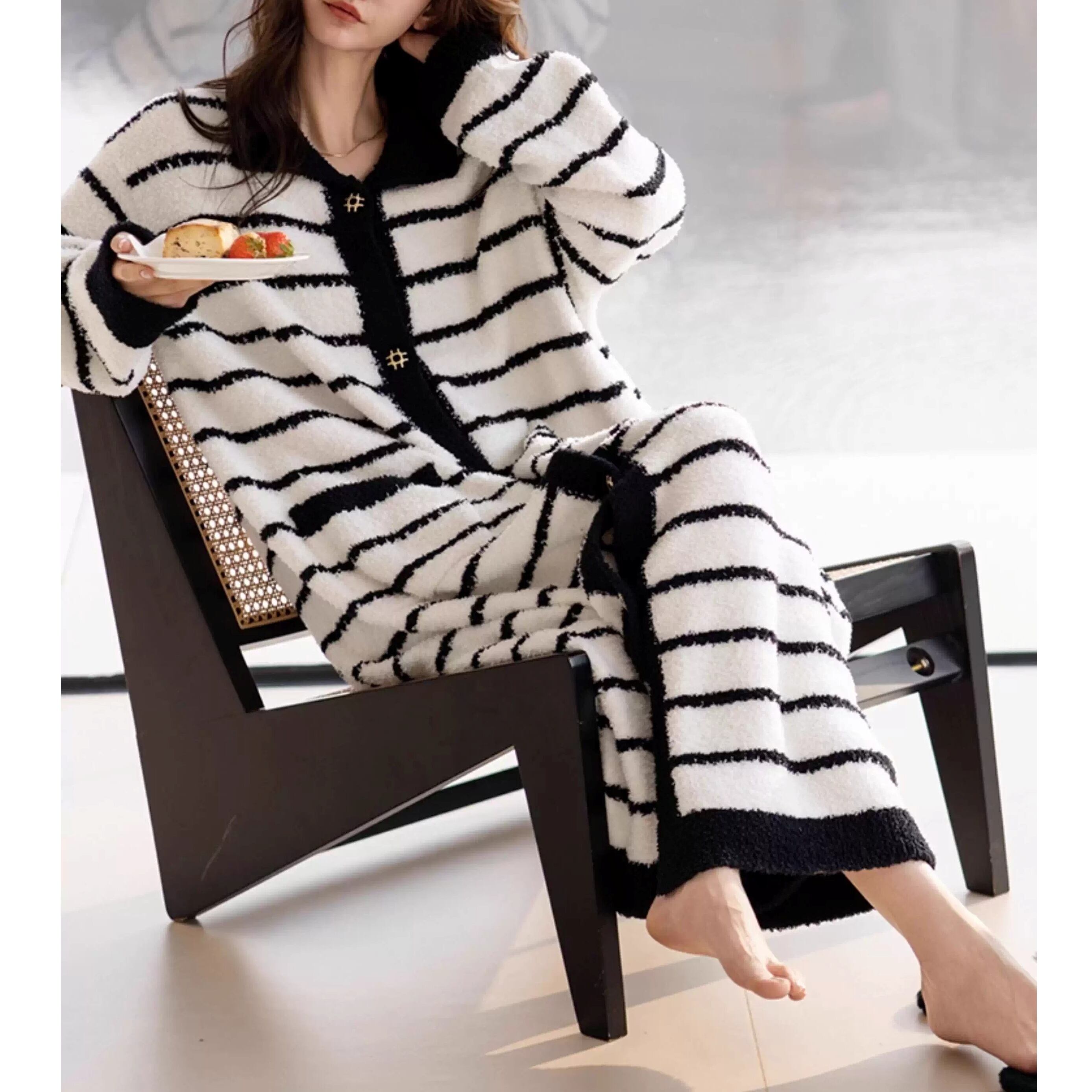 【M-2XL】warm monotone stripe pattern room wear p1617