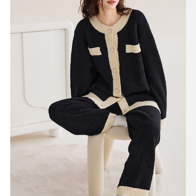洗練されたモノトーン配色が魅力の、バイカラーデザインのパジャマSET。