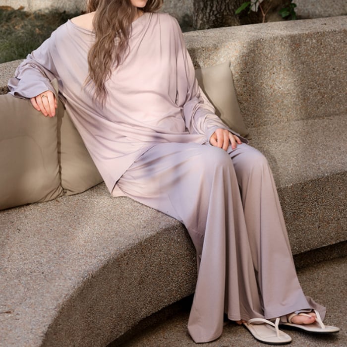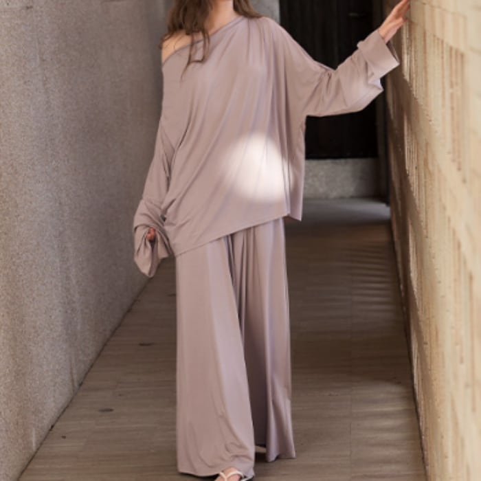 ルーズシルエットが魅力の、シンプルデザインプルオーバースタイルパジャマSET。