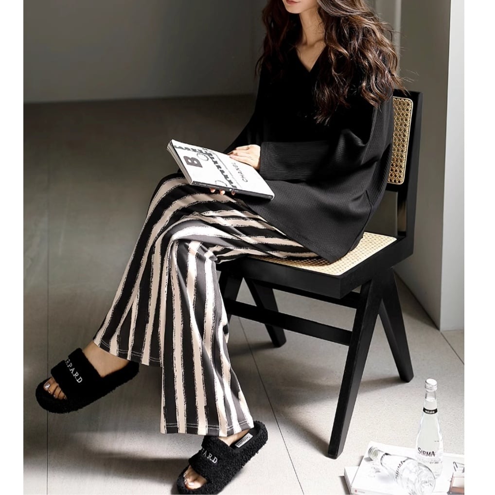 現品限りSALE【Lサイズのみ限定】 monotone stripe pattern style pajamas p1425