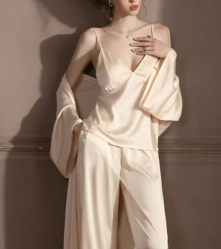 SUYAA人気ランキングbest10 ↓ https://www.suyaa.shop/blog/2021/11/14/025758 ▪︎SUYAA人気アイテムはこちら https://www.suyaa.shop/categories/3901376 ▪︎公式Instagram https://www.instagram.com/suyaa_sleep ▪︎SUYAA shop https://www.suyaa.shop/ ❁.。.:*:.。.✽.。.:*:.。.❁.。.:*:.。.✽.。.:*:.。.❁.。 【必ずお読みください】 こちらのパジャマはシルク80%ポリエステル20%です。シルク100%ではありませんが利点としましてシルク100%よりもしわになりにくく厚みがあります。 手触り肌触りもとても滑らかで心地よい素材となっております。 シルクは保温性、吸湿性、放湿性に優れていて お肌の成分に近い約20種のアミノ酸が結合した純粋なタンパク質繊維でできているのでお肌にもやさしく、 静電気が起きにくいので体にもやさしい素材です! 静電気が起きにくい=睡眠の質も上がります。 静電気が起きやすい衣類を日常的に着用していると 帯電しやすく体はストレスを感じ、不調や冷えなどが起こりやすくなります。 とくに睡眠時は寝返りを沢山打つことで静電気が沢山発生してしまいます。静電気が沢山発生すると脳はストレスを感じて、睡眠の質にも影響を及ぼしてしまいます。 そのため、睡眠時にはシルクや綿素材のアイテムで 静電気対策をすることで睡眠の質を高めることが おすすめです! ◎シルク枕カバー https://www.suyaa.shop/items/58691216 ▪︎睡眠時に髪の毛のケアもしたい方にはシルクのヘアキャップもございます。 (睡眠時は寝返りの摩擦や静電気で髪の毛が傷みやすくなるのでモデルさんはヘアキャップを着用されている方が多いです) ◎シルク100%ヘアキャップ https://www.suyaa.shop/items/58685348 【素材】シルク80%ポリエステル20% ーーーーーーーーーーーーーー 【SILK素材インナーウェア】 ❁silk❁ シルクは保温性、吸湿性、放湿性に優れていて お肌の成分に近い約20種のアミノ酸が結合した純粋なタンパク質繊維でできているのでお肌にもやさしく、 静電気が起きにくいので体にもやさしい素材です 日常に身につけるインナー類はシルク素材のものを使用し、静電気の影響を防ぐことで体にかかるストレスを減らすことにもなり、健康や美容や睡眠の質の改善にも役立ちます! 肌に一番近いところ、女性にとって大切な胸や陰部を守るために身につける下着はぜひシルクが含まれる素材のインナーをおすすめしています! SUYAAではお手頃価格でデザイン性も重視したシルクインナーを取り揃えております!ルームウェアやパジャマと共にぜひご利用ください。 シルク素材インナーはこちら (ブラジャー/ショーツ/キャミソールetc...) ↓ https://www.suyaa.shop/categories/3616774 シルク商品の中にはシルク以外を使用しているデザインもございます。シルク100%でお肌が弱い方におすすめ商品はこちらです ↓ https://www.suyaa.shop/categories/4017780 silk アイテム人気ランキング ↓ https://www.suyaa.shop/blog/2021/12/14/131423 ーーーーーーーーーーーーーーーー 【お届けについて】 こちらの商品は海外店舗より直接発送となる為、 ご入金から早くて10日〜3週間前後でお届け致します。(時期や商品によって30日ほどいただく場合もございます) ◼️注意事項 ・タイミングによっては 商品在庫切れにより 注文キャンセルとさせていただく恐れもございますので、予めご了承くださいませ。 その場合は最後までしっかりと対応させていただきますのでご安心ください。 ————————————ーーーー ご購入前にこちらを必ずお読みください。 ↓ https://www.suyaa.shop/blog/2021/07/11/002334 商品番号S001