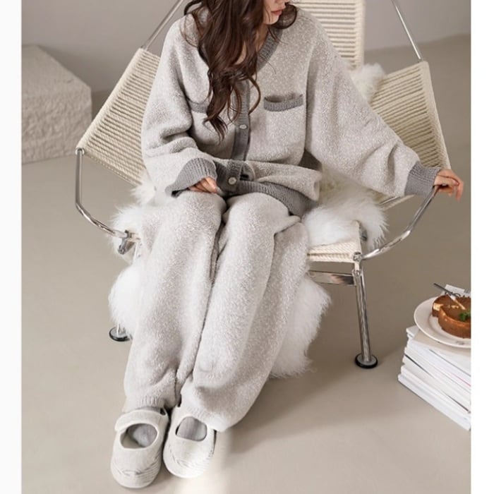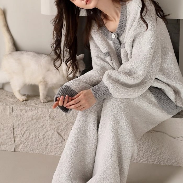 【M-2XL】half-edge velvet bicolor pajamas p1555
