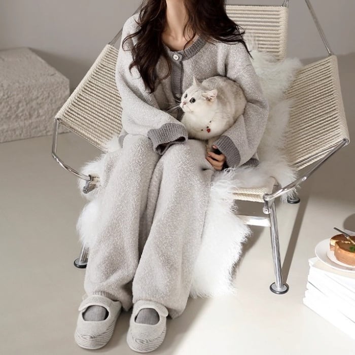 淡いグレーと深みのあるグレーを組み合わせたパジャマSET。
