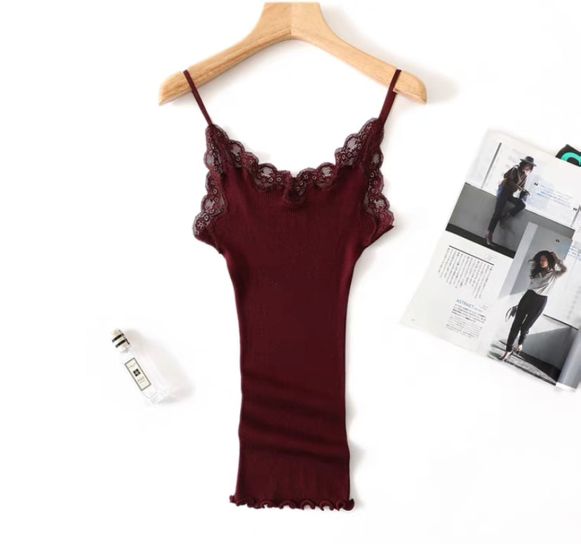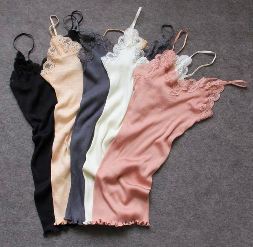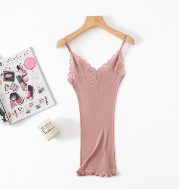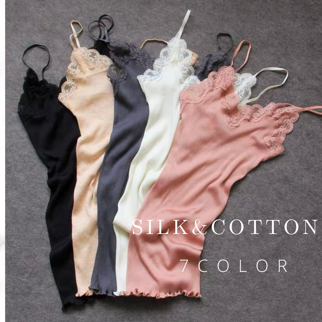 【シルク70% 綿30% 】リブ素材 フィットキャミソール 7color❁フリーサイズ