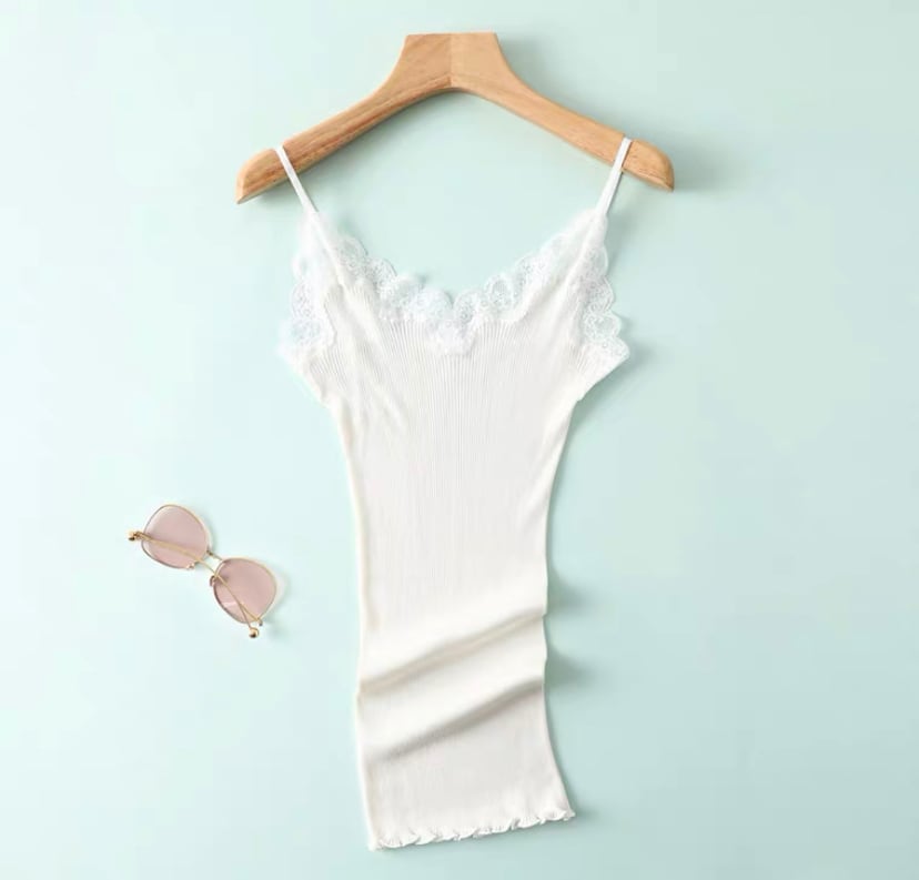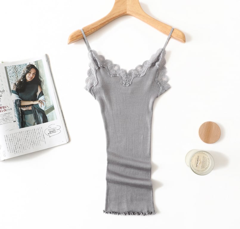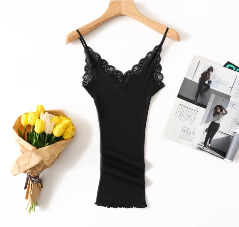 【現品限りsaleブラック1点のみ】Lace rib camisole s137