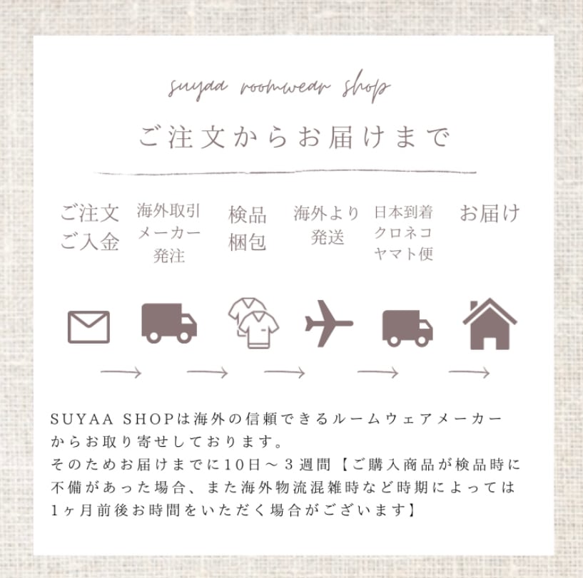 ご入金から早くて10日〜3週間前後でお届け致します。(時期や商品によって30日ほどいただく場合もございます)