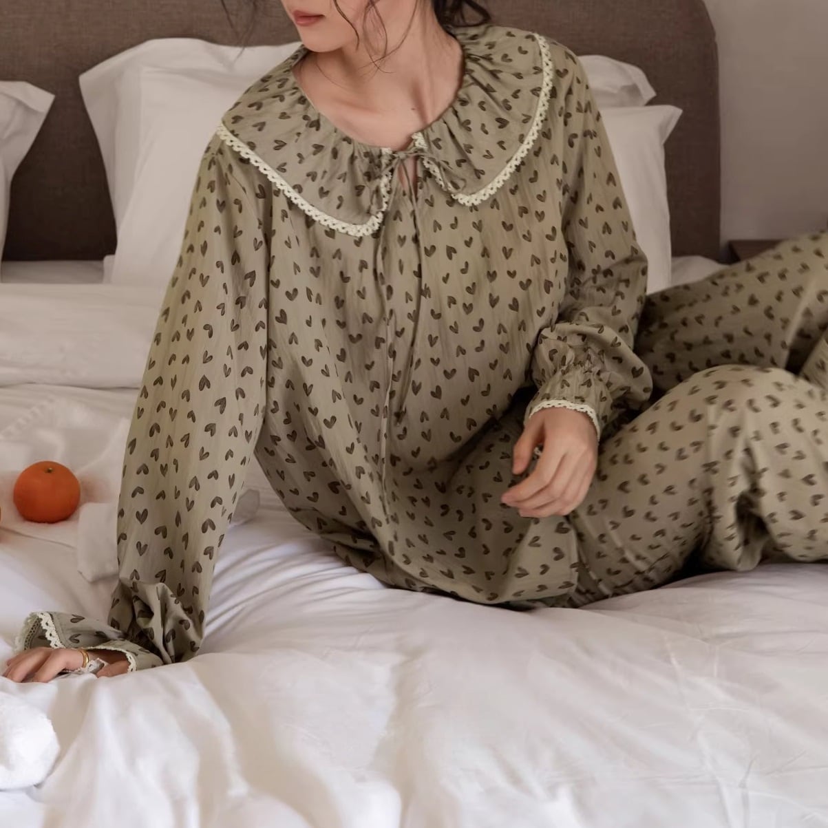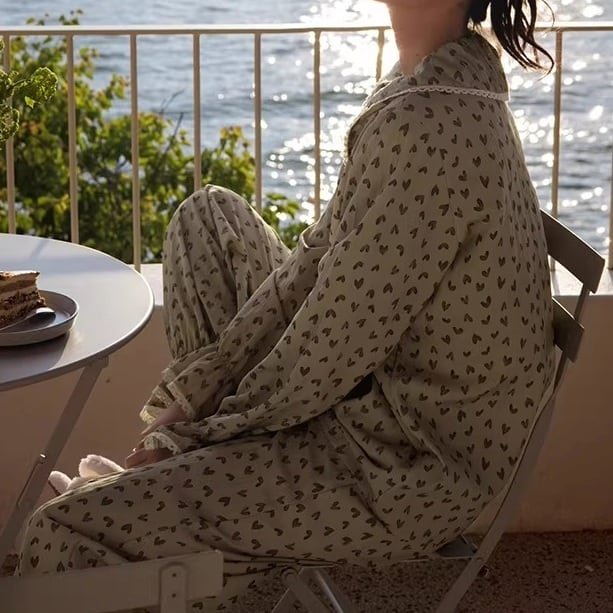 《レトロカラー×ハート柄で叶える、大人可愛いリラックスパジャマ》