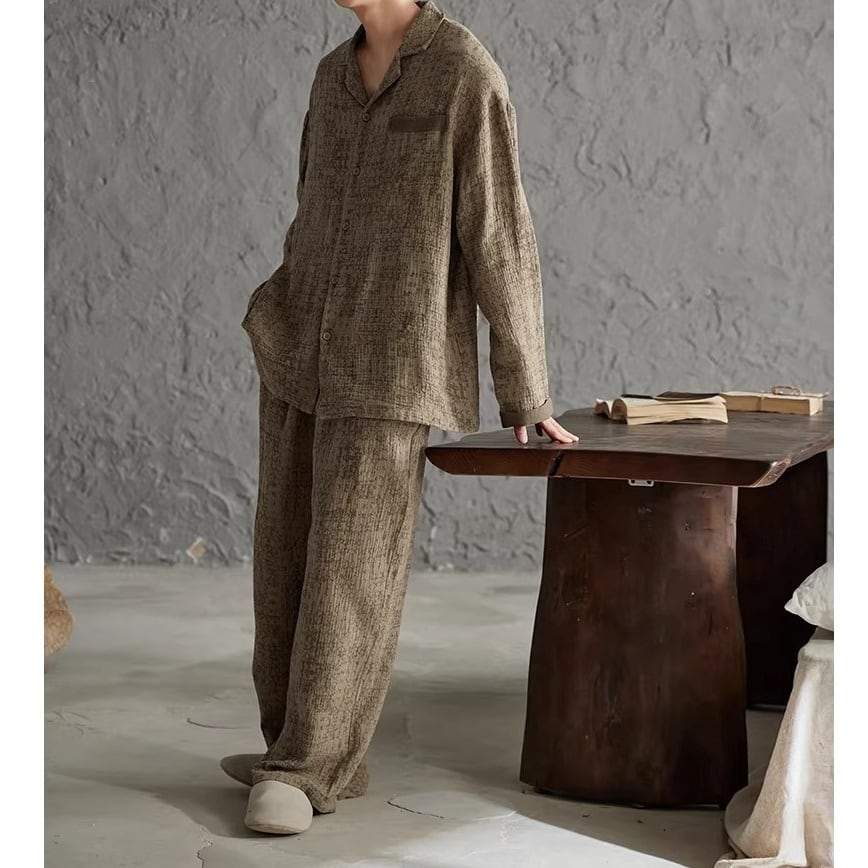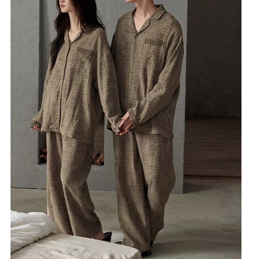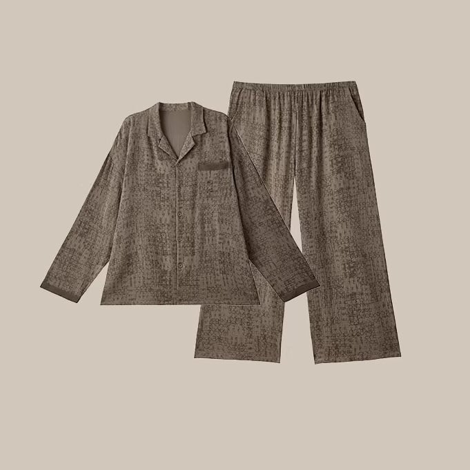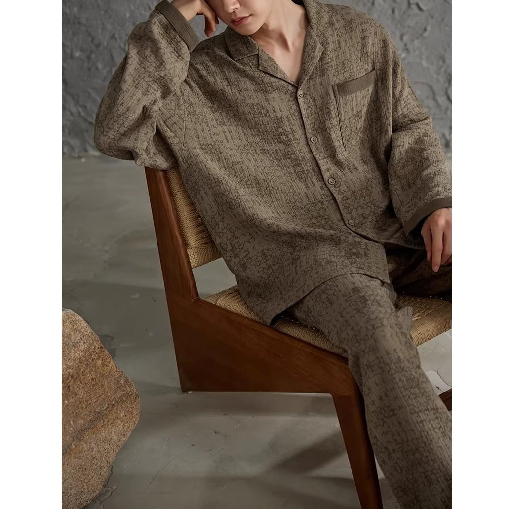 ブラウンカラーをベースに、同色のさりげない柄をあしらったパジャマSET。