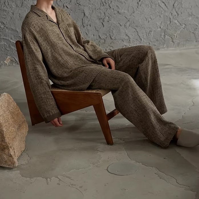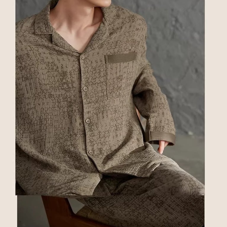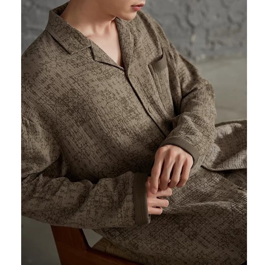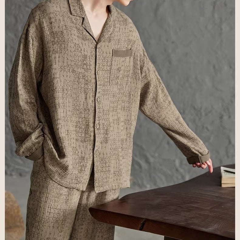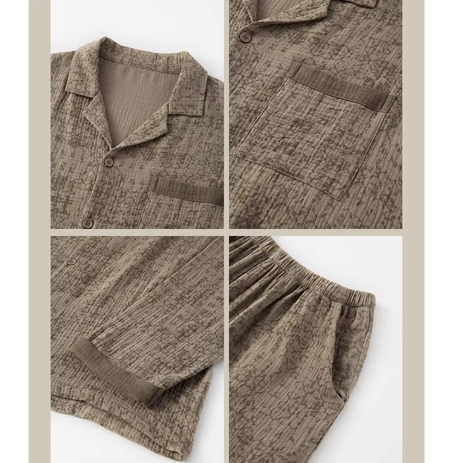 ブラウンカラーをベースに、同色のさりげない柄をあしらったパジャマSET。
