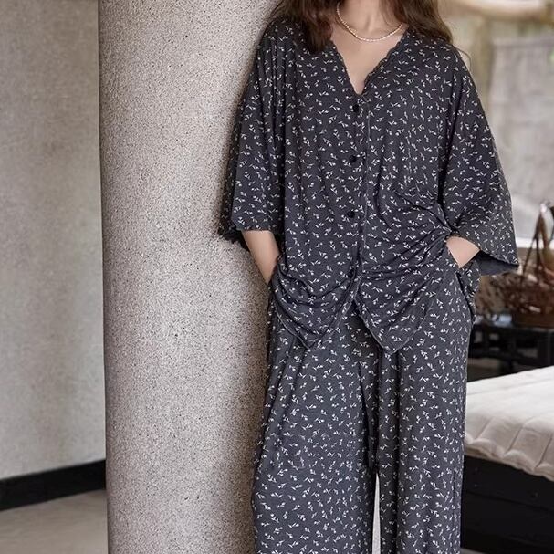 【M-XL】small flower pattern cardigan style pajamas p1645