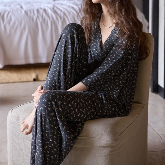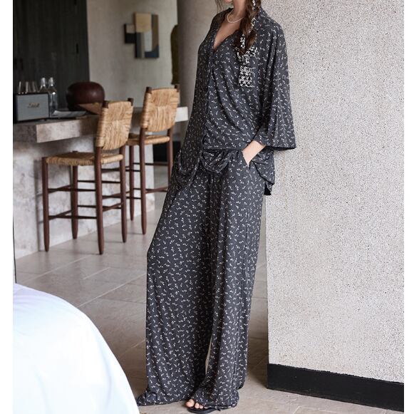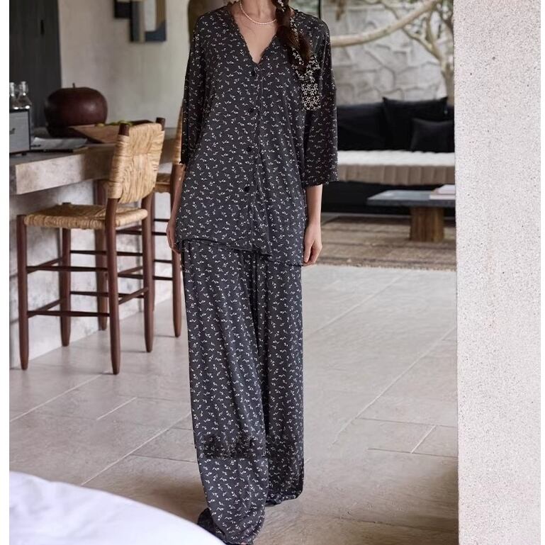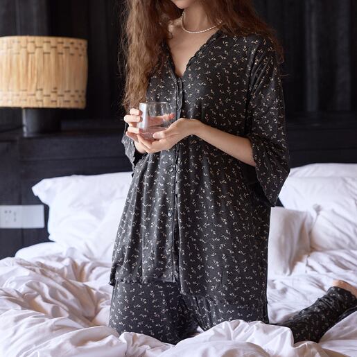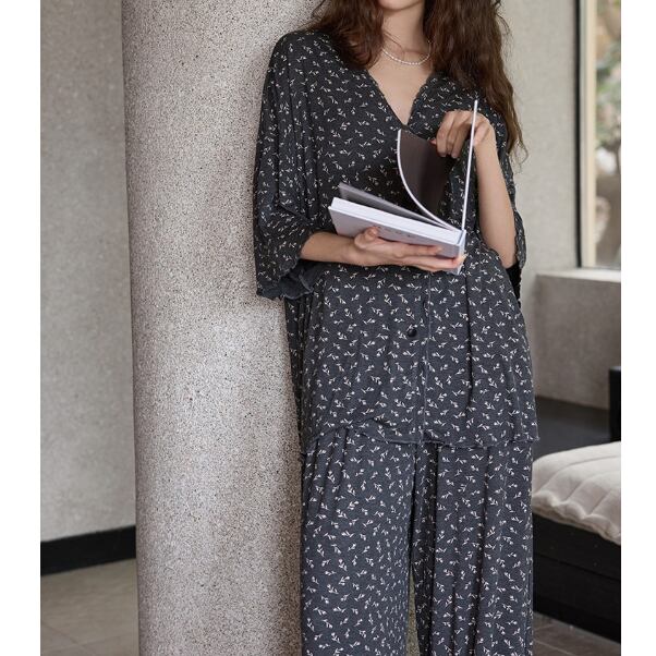 ブラックベースに小花柄をあしらったパジャマSET。