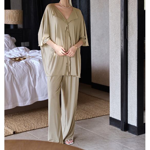 【M-XL】frill collar simple design cardigan style pajamas p1646