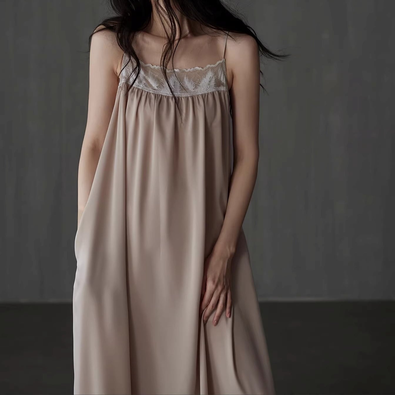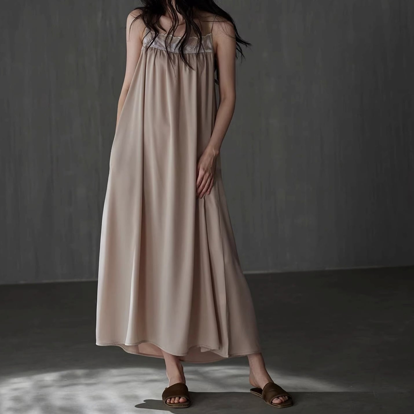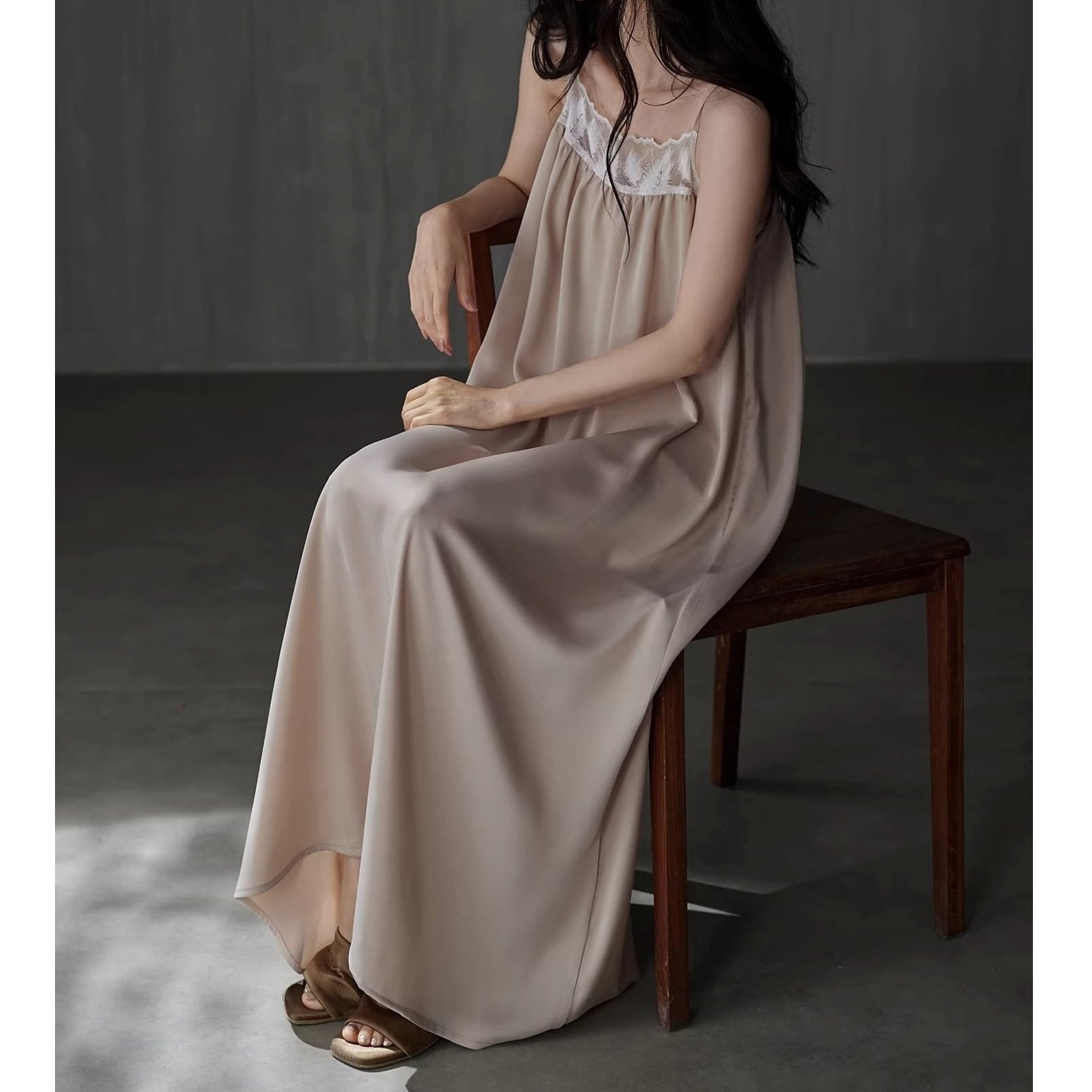 《繊細レースが引き立てる、上品でやさしいキャミソールドレス》